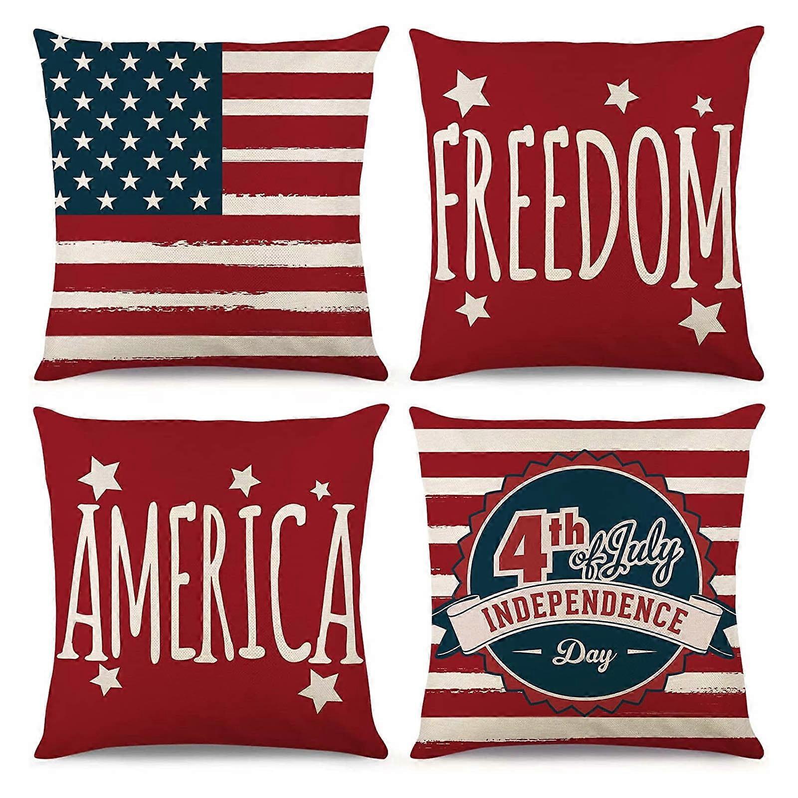 4th of July Decorations, Independence Day Pillow Covers 18x18 Set of 4, Patriotic Throw Pillows for Memorial Day, Cushion Cases