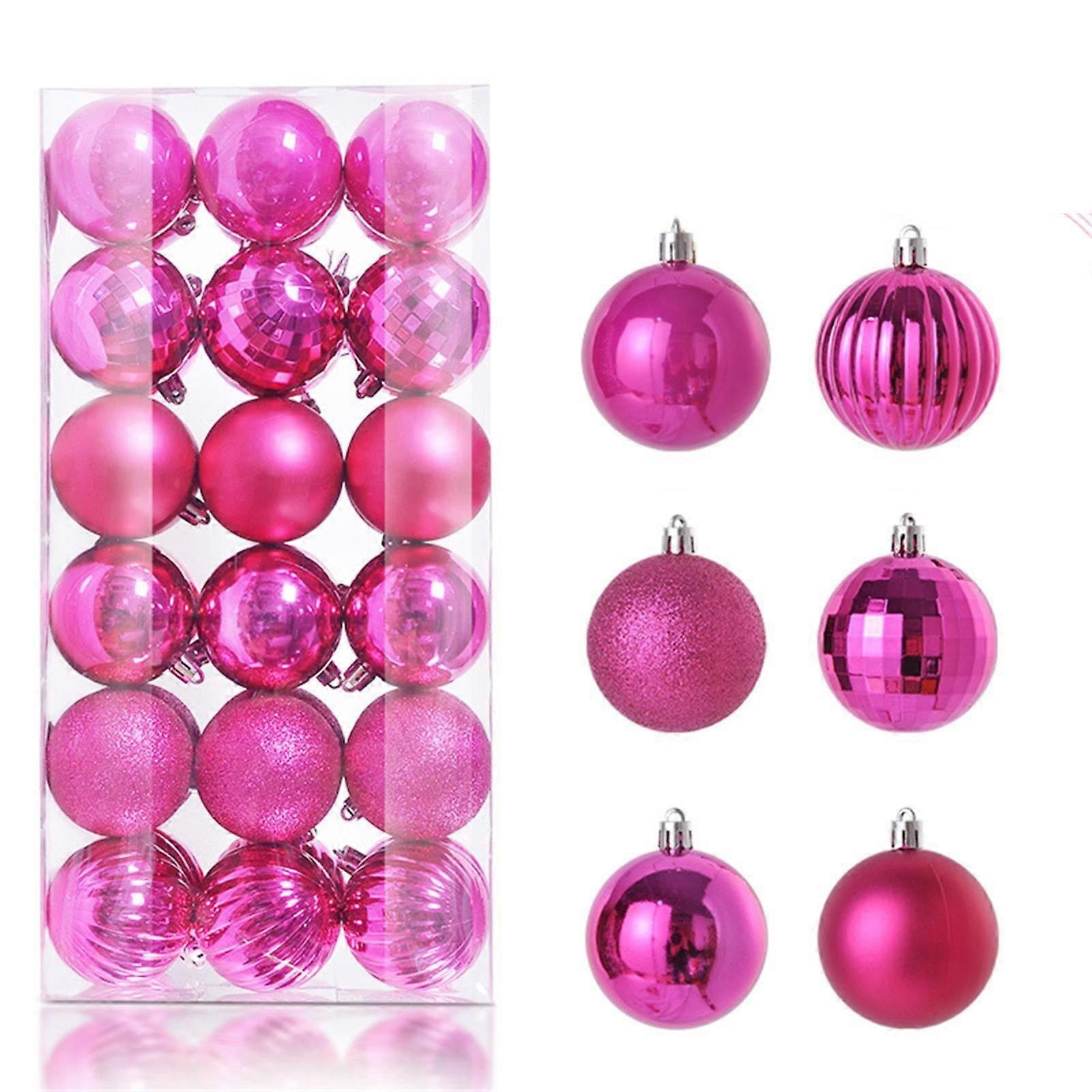 HANXIULIN 36Pcs 1.2" Green Shatterproof Christmas Ornaments Set, Compatible with Holiday Home Decor, Tree Hanging Baubles, Party Gifts - Hot Pink