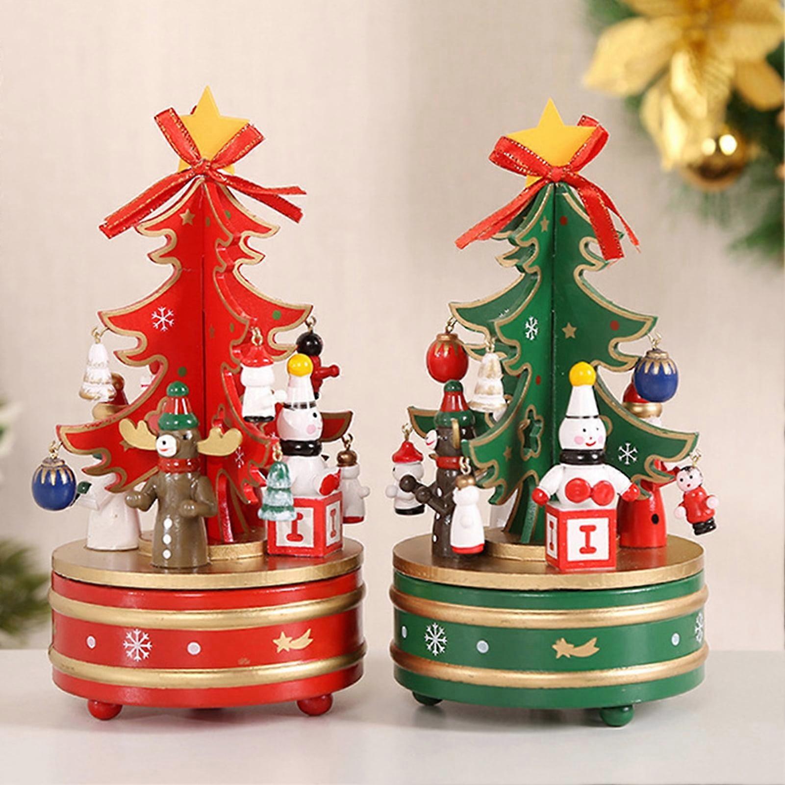 SUSUchens Wooden Christmas Tree Music Box Rotating Music Box Holiday Desktop Figurine for Living Room Bedroom Party Decoration White