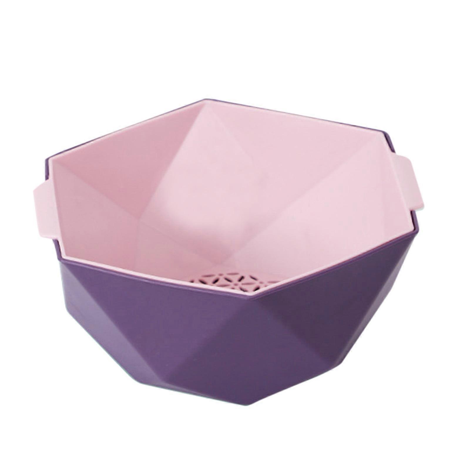 XIUH Kitchen Drain Basket, Double Layer Fruit & Veggie Washing Basin, Hollow Storage Basket for Household Use - Pink