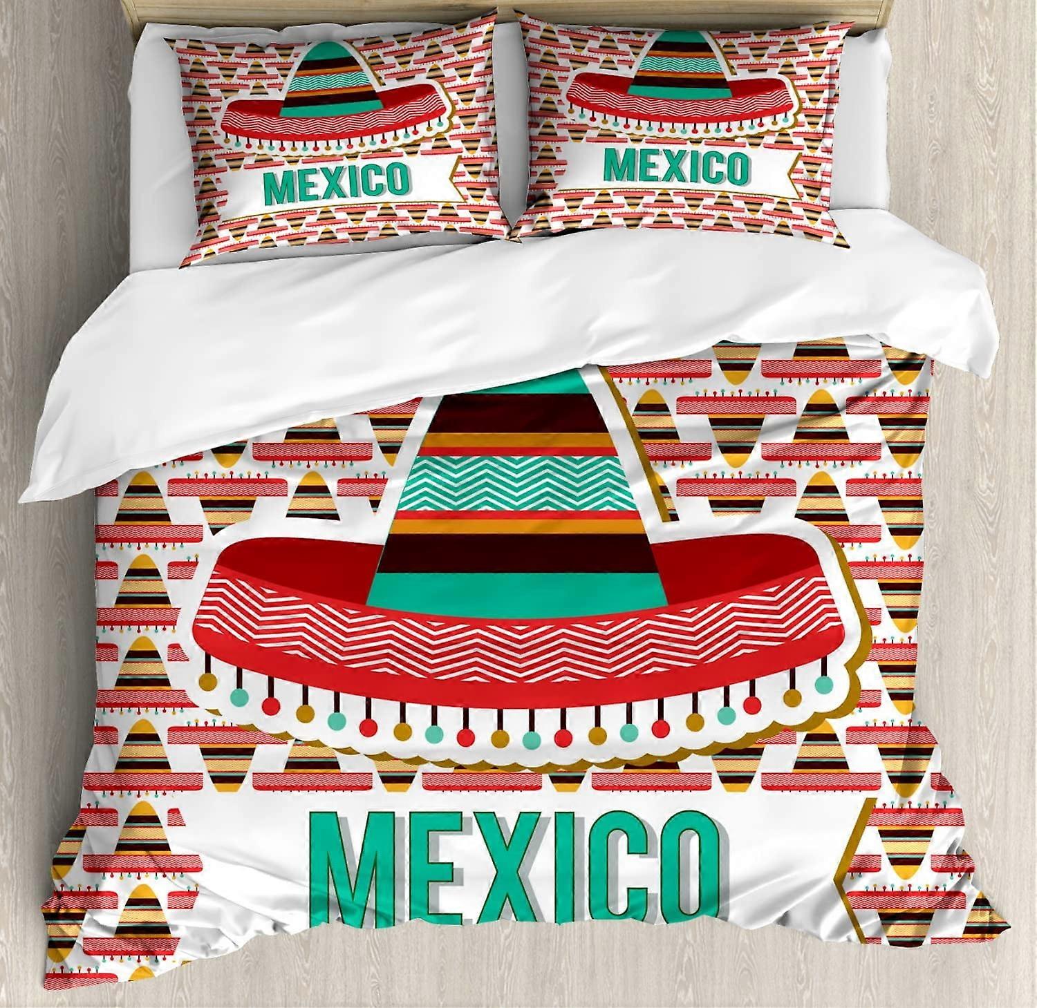 Mexican Duvet Cover Set, Mexico Design with Traditional Elements, Includes 1 Duvet Cover & 2 Pillowcases, Pale Orange Mint Green