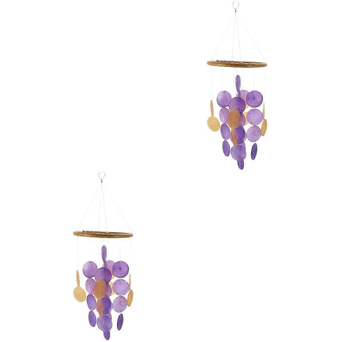 2 Pcs Home Decor Hanging Wind Bell Household Shell Chime Ornament Interior Decoration Chimes Outdoor Purple Bamboo
