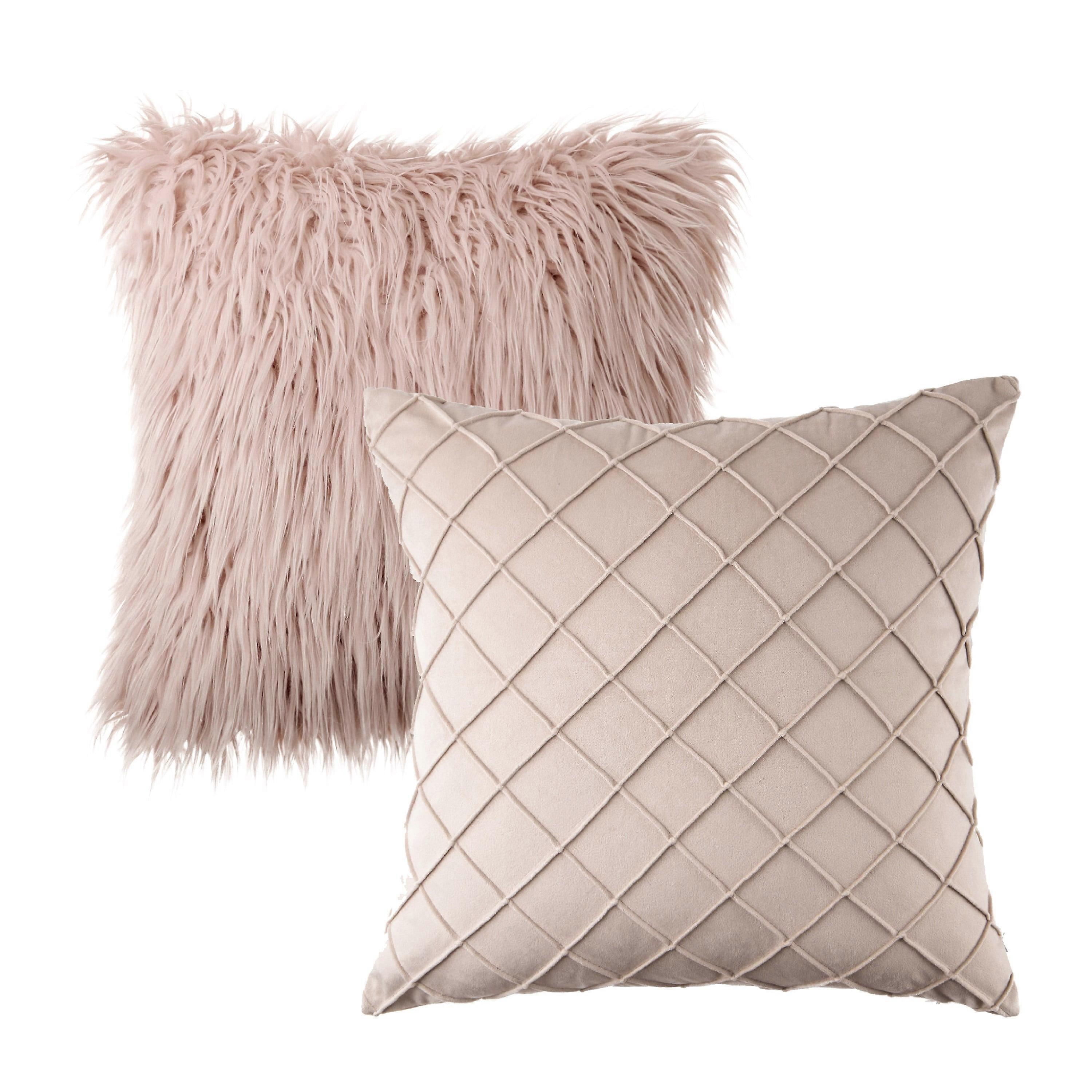 Phantoscope Designer's Choice Decorative Throw Pillow Set, Fluffy Faux Fur & Pleated Velvet Bundle, for Sofa Couch Bedroom, 18" x 18", Beige, 2 Pack