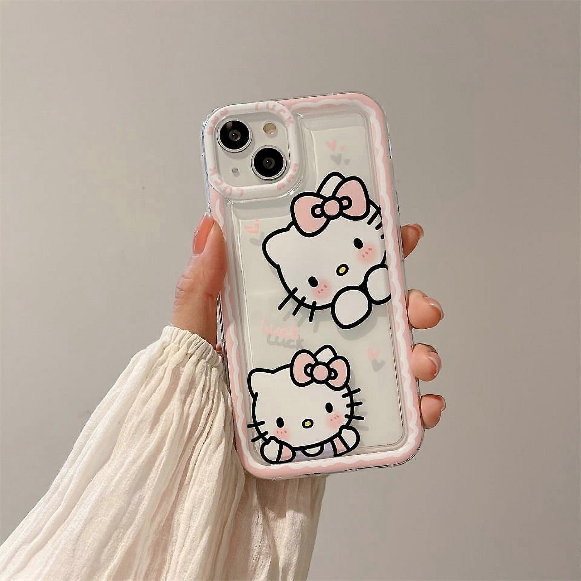 Sanrio Ins Hello Kitty Edge Phone Cases For compatible with Iphone 15 14 13 11 12 Pro Max XR XS 7 8 Plus Y2k Girl Clear Silicone Anti-fall Cover