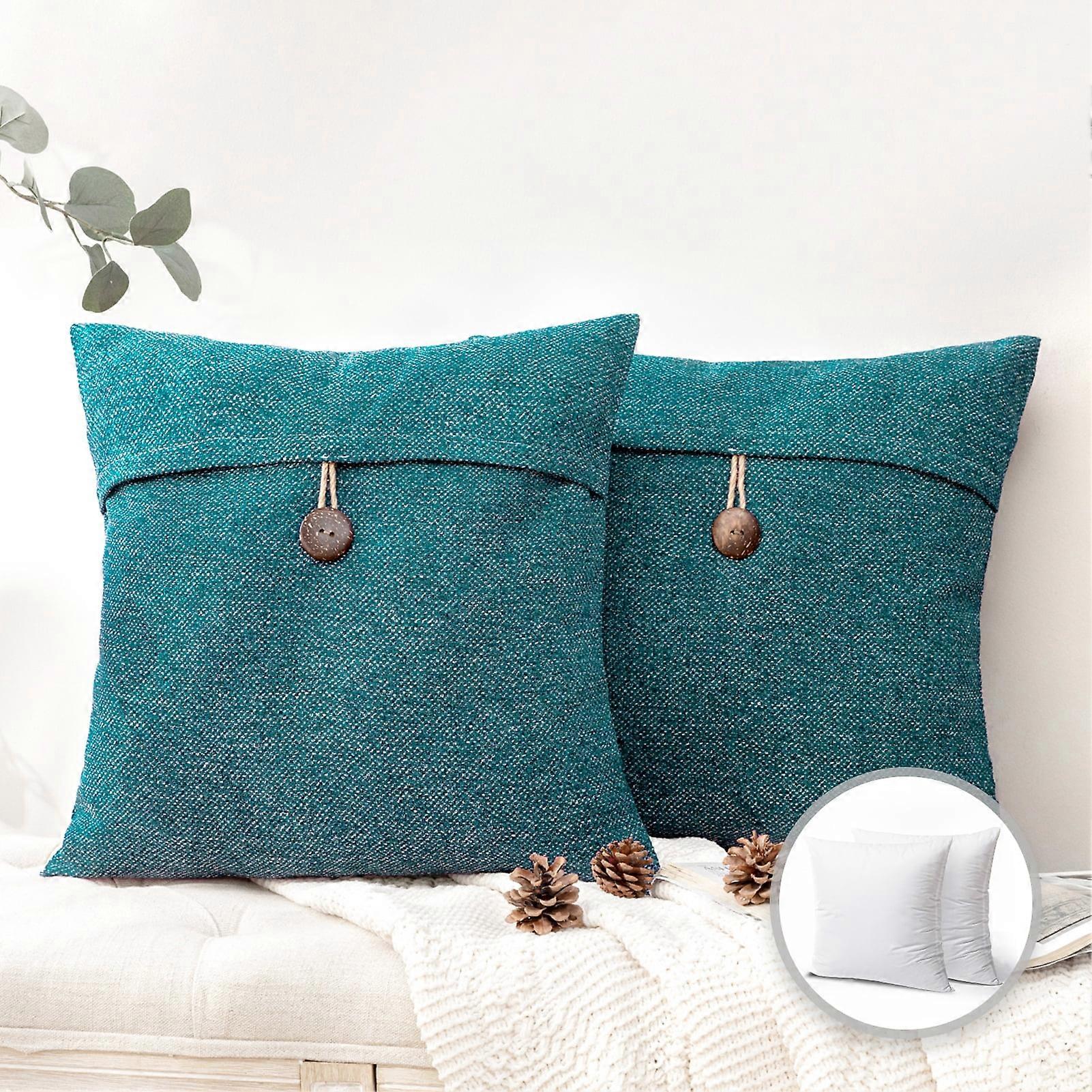Phantoscope Single Button Cotton Blend Series Decorative Throw Pillow, 22" x 22", Lake Blue, 2 Pack