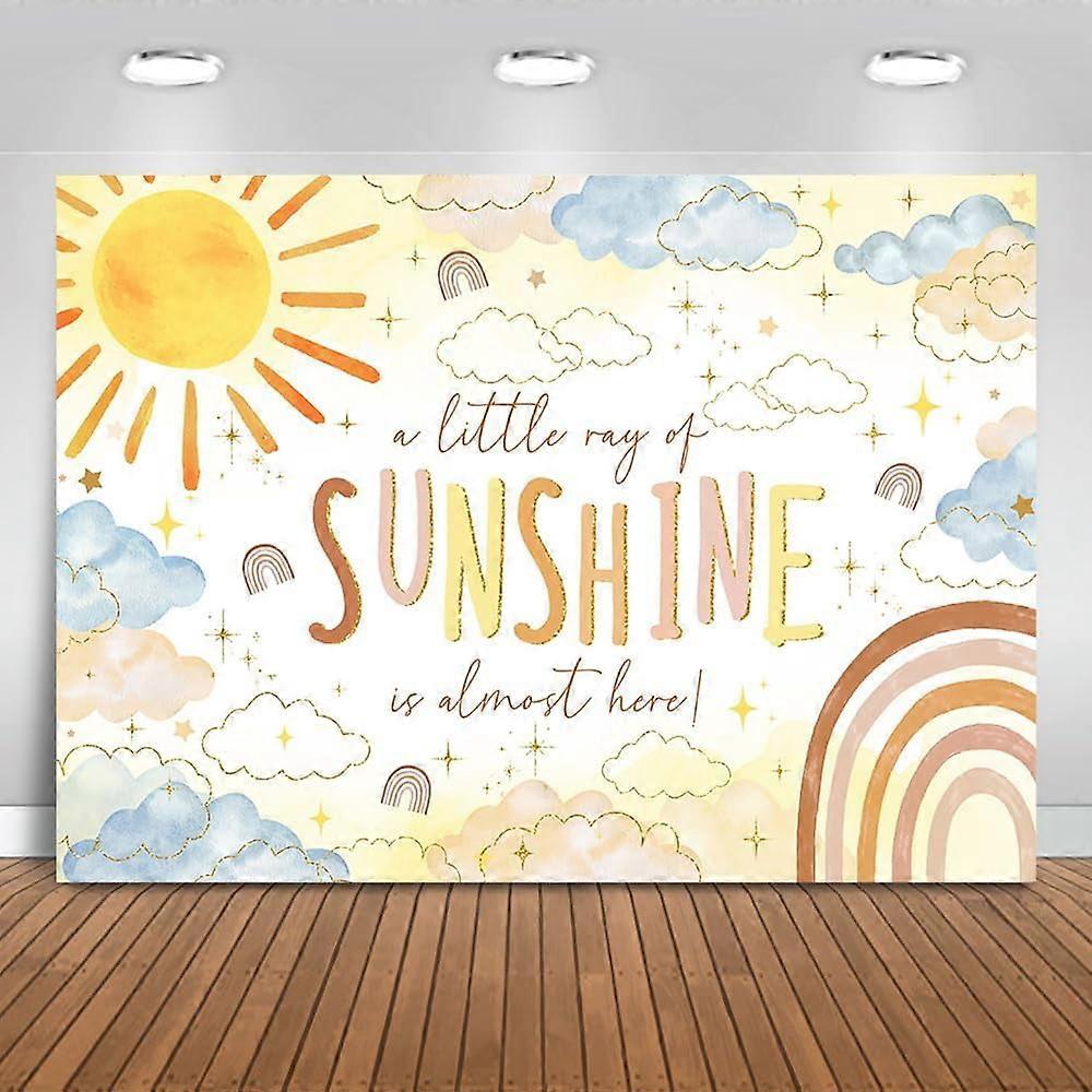 Custom Sunshine Baby Shower Backdrop, A Little Ray of Sunshine, Boho Rainbow Cloudy Decor, Banner Photo Studio Props (7x5ft)
