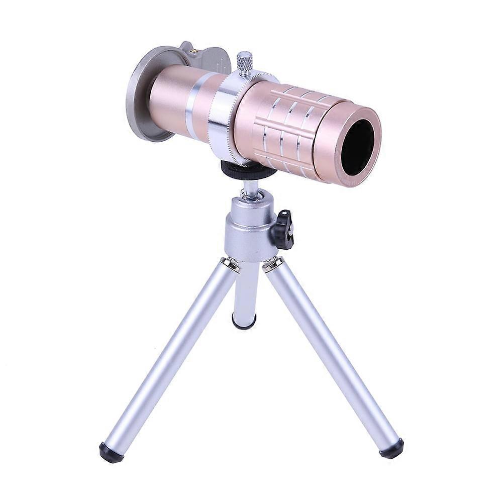 jixopn 12x Telephoto Lens+ Wide Angle Macro Lens+ Tripod for Mobile Phone (Gold)-147052.02