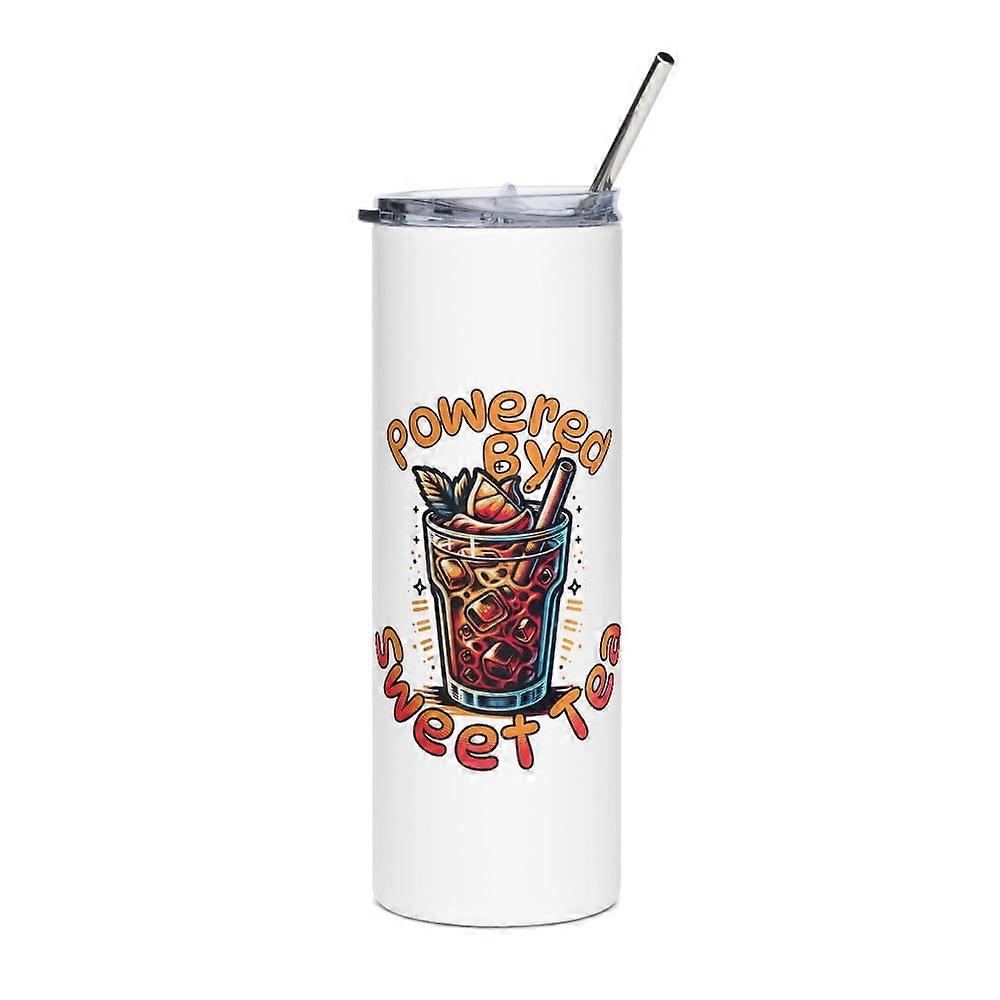 Drink Tea Lover Skinny Slim Tumbler, Powered By Sweet Tea (White)