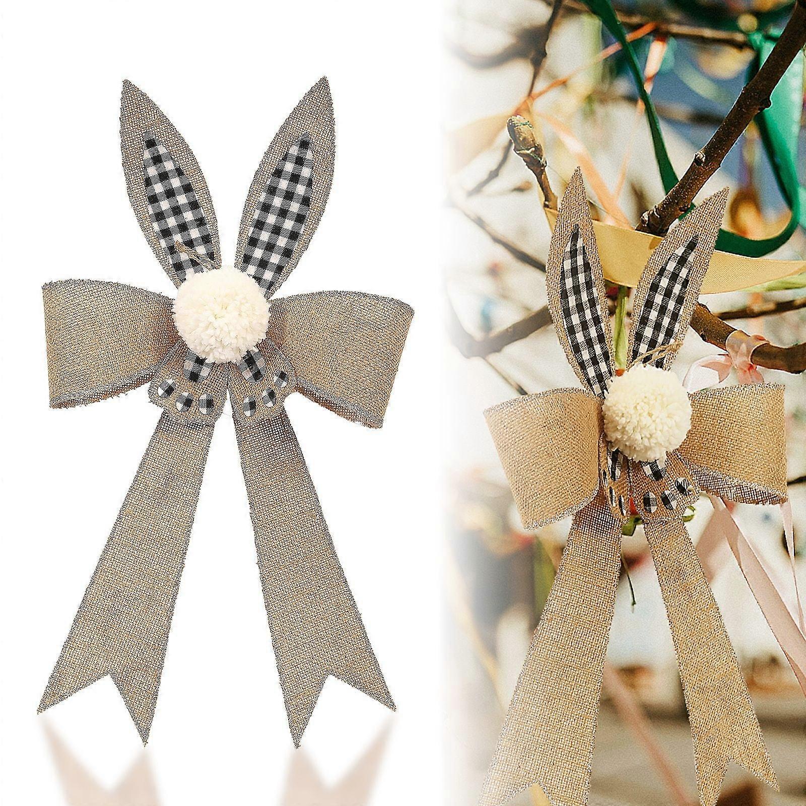 Christmas Ear Bow Decoration Christmas Ribbon Imitation Linen Checkered Bow