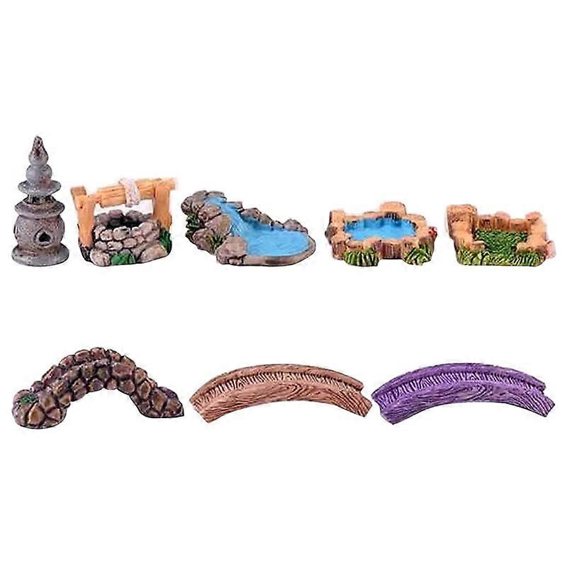 Fairy Garden Kit, 8pcs Miniature Pond Tower Bridge Ornaments For Garden & Patio Micro Landscape Yard Bonsai Decoration