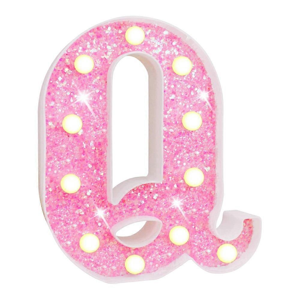 LED Marquee Letter Q Light - Pink Glitter Alphabet Sign, Battery-Powered for Night Light, Wedding, Birthday, Party, Home, Bar Decor, Gift