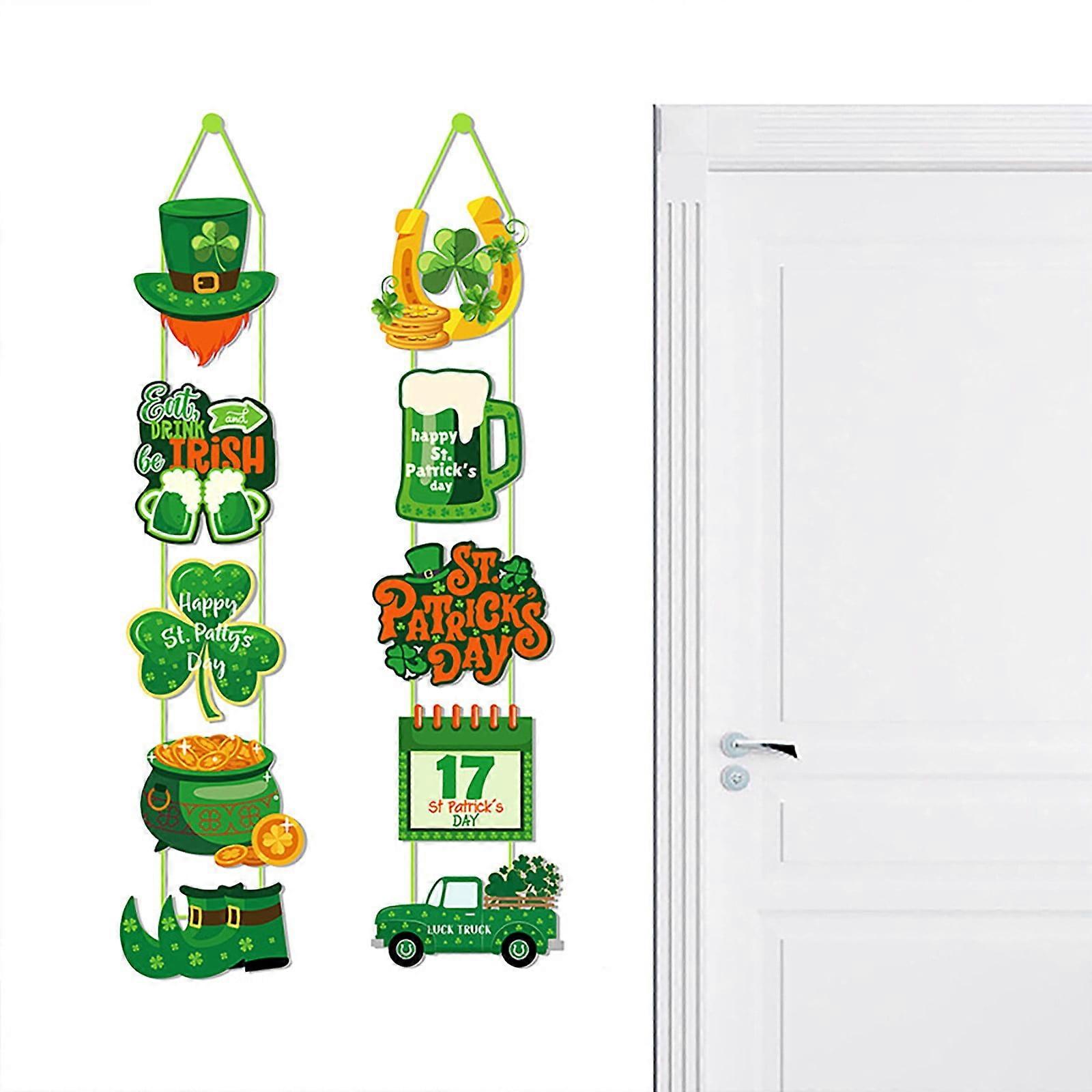 St. Patrick's Day Clover Paper Door Hanging, 1 Set Decorative Door Hangings (10 Cards + 2 10-Meter Ribbons + 20 Glue Dots + Needle)