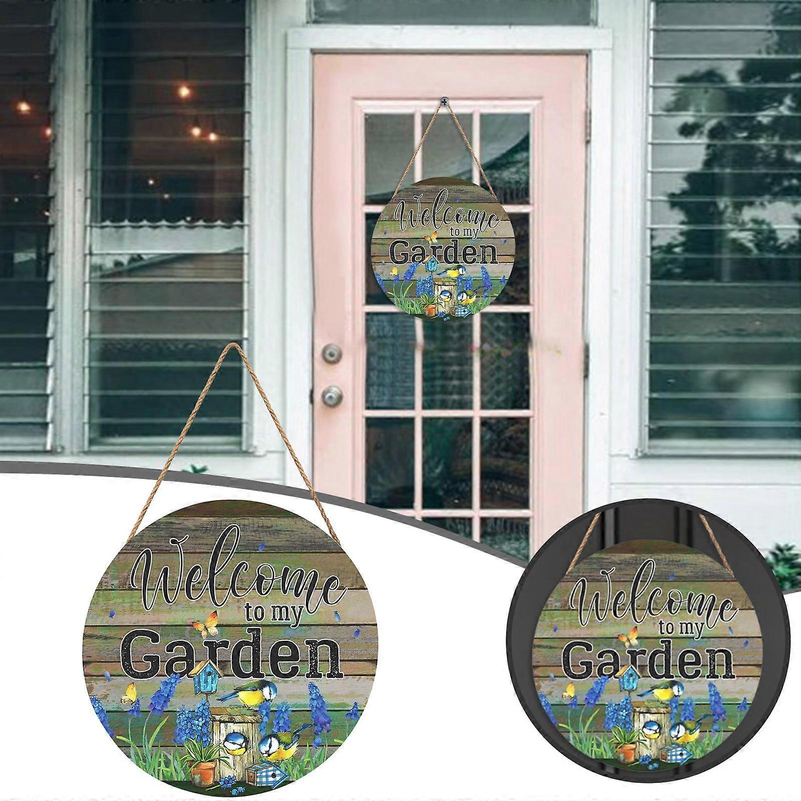 Begine House Number, Wooden Garden Decoration, Compatible with Welcome to My Garden Logo, Circular Wall Sign, Address Plaque
