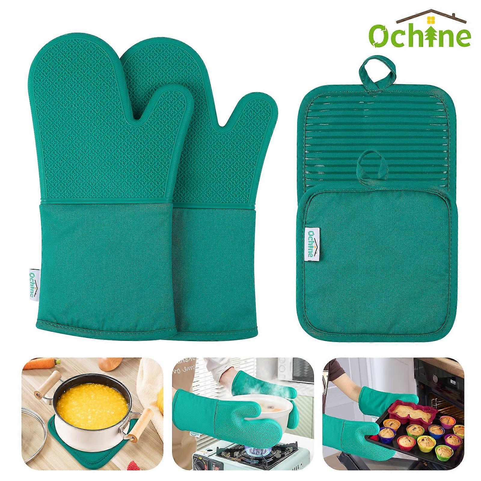 4-Piece Oven Mitt & Pot Holder Set - 500°F Heat Resistant Silicone Gloves with Trivet - Flexible, Durable & Comfortable for Cooking, Baking &
