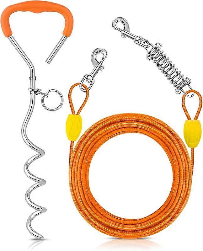 Dog Hand Holding Rope and Stakes-30 Feet (about 9.2 M) Heavy-Duty Cable with Spring-No Tangling, 16 Inches (about 40.6cm) Earthing Column