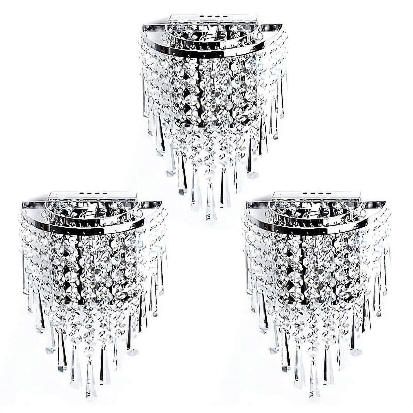 3X Modern Crystal Wall Lamp Chrome Sconce Wall Light for Living Room Bathroom Home Indoor Lighting Decoration