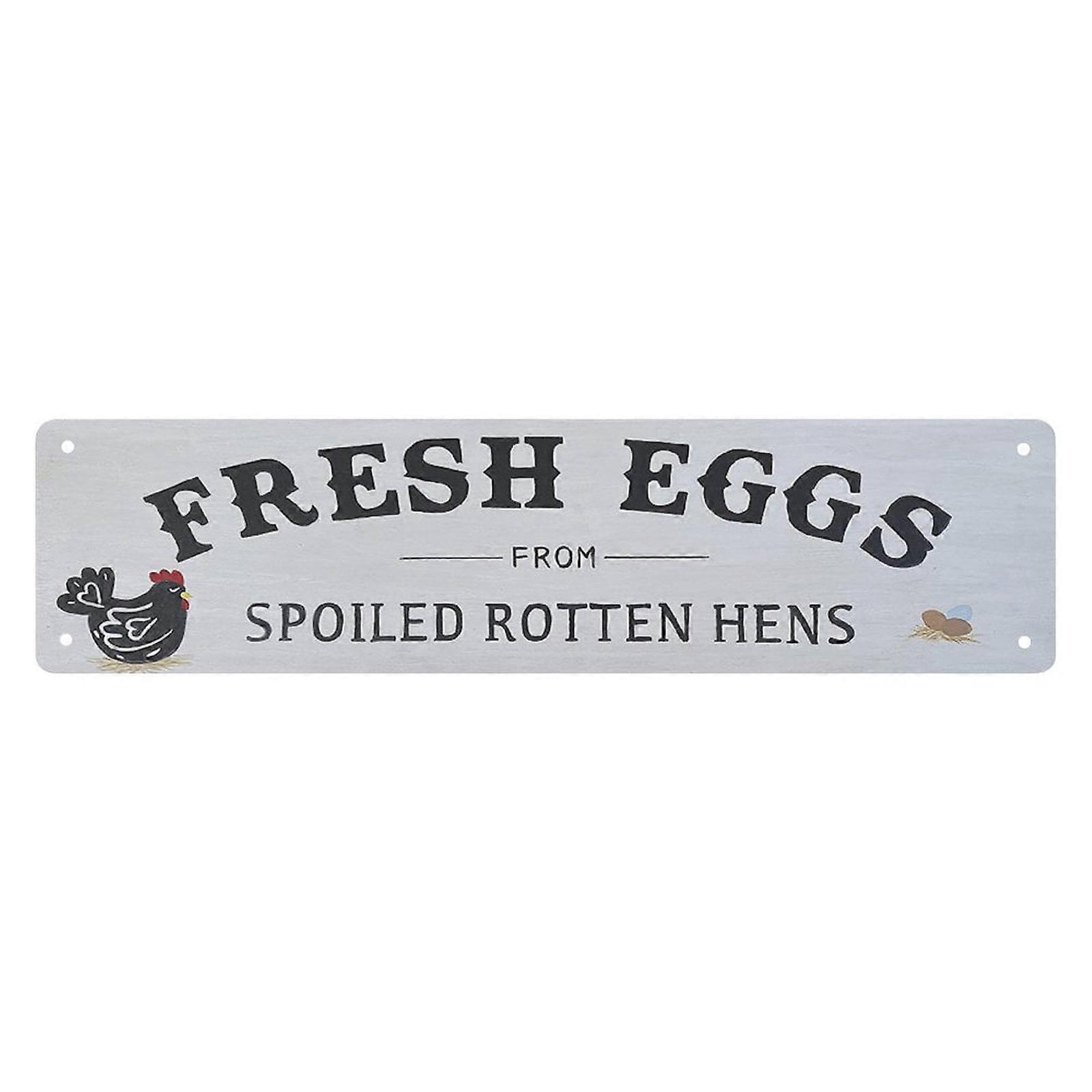 Vintage Metal Tin Sign 4x16 inch - Fresh Eggs From Spoiled Rotten Hens, Rustic Wall Art for Bar, Man Cave, Shop Decor