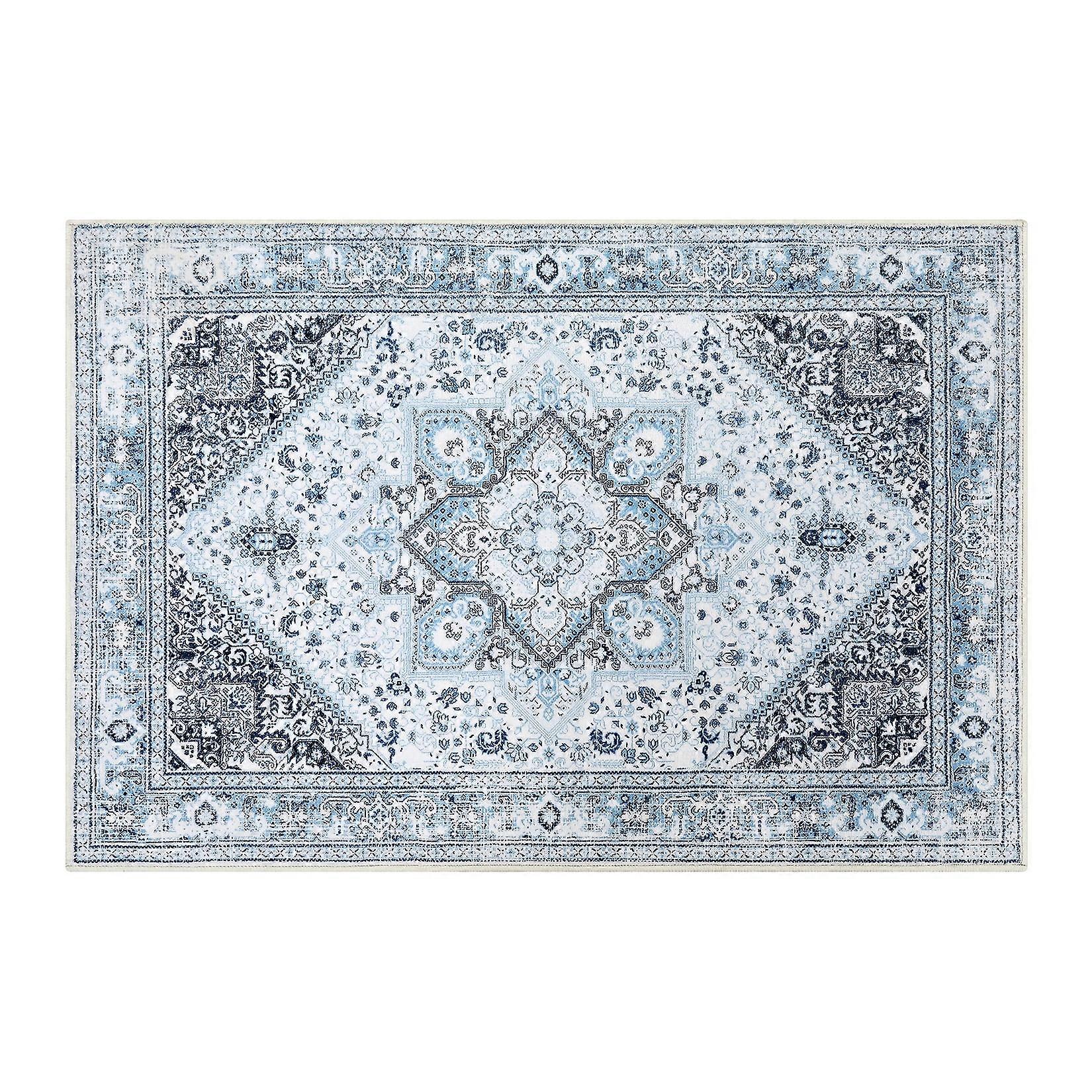 Haperlare 2x3 ft Floral Area Rug, Blue Medallion Non-Slip Washable Low-Pile Indoor Accent Rug for Kitchen, Bedroom, Entryway