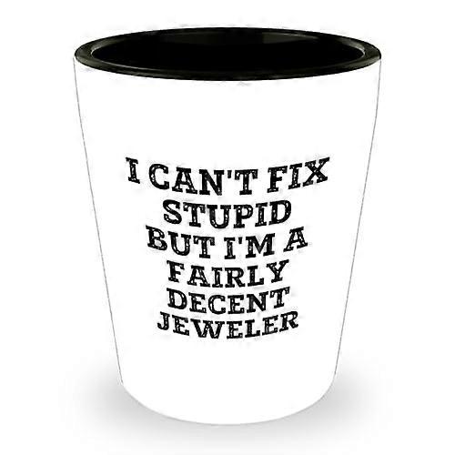 Funny Sarcastic I Can't Fix Stupid But I'm A Fairly Decent Jeweler | Microwave & Dishwasher Safe White Ceramic Shot Glass (1.5oz) - Great Mother's