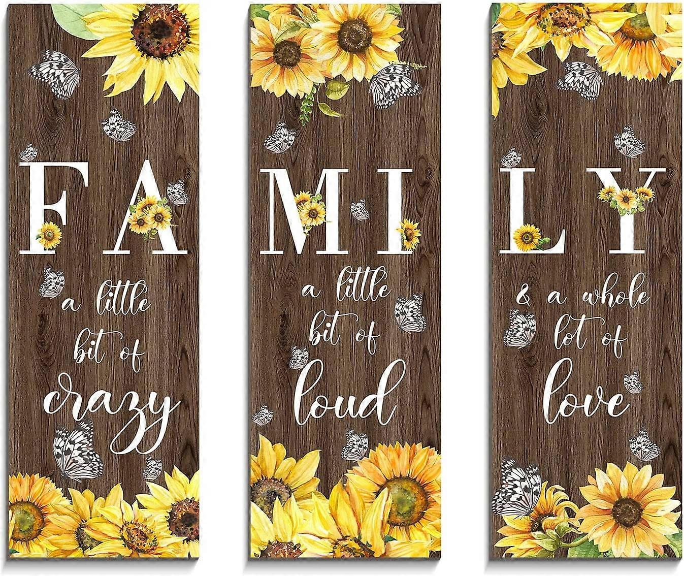 MUCHENGGIFT Sunflower Wall Art, 3-Piece Family Sign, Rustic Wood Wall Hanging Plaque Decor Compatible with Home Living Room, White
