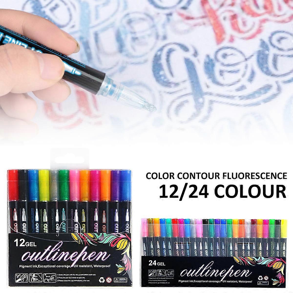 FUYGRCJ 24 Colors Metallic Marker Double Line Outline Marker Photo Album Paint Marker Pen for Metal Ceramic Glass