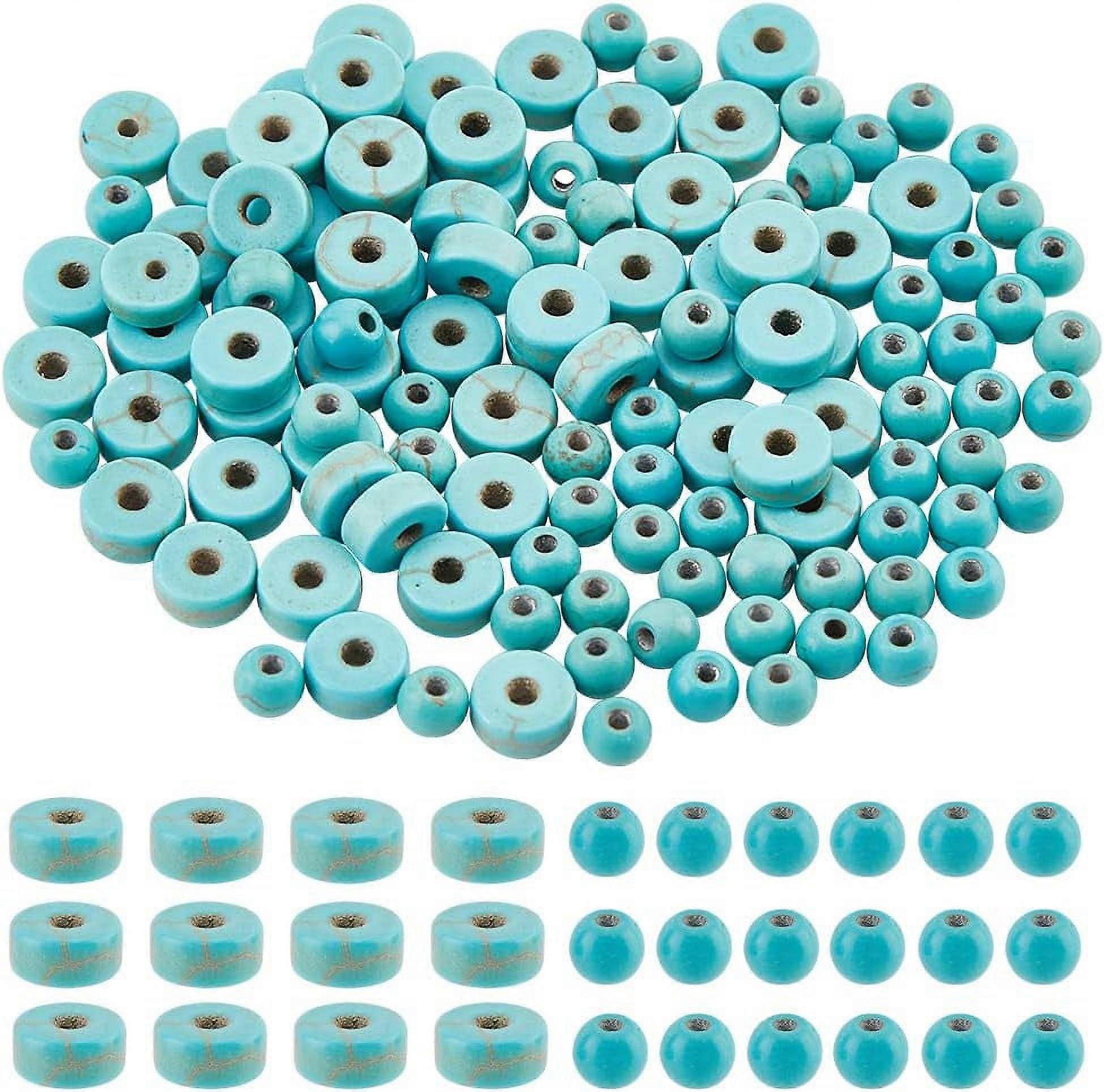 120Pcs Synthetic Turquoise Beads Round/Flat Round Natural Blue Turquoise Beads Undyed Gemstone Stone Beads