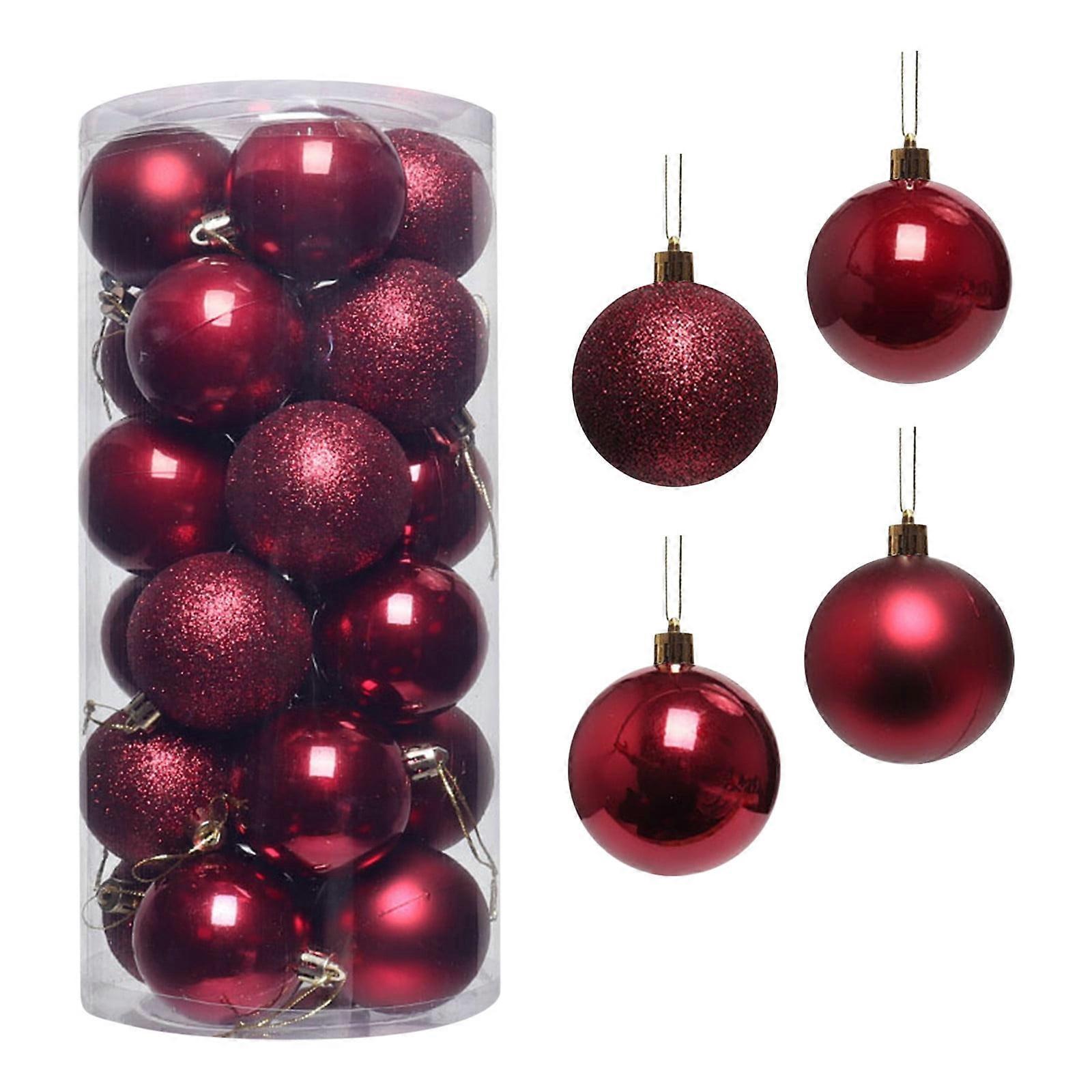 Yhmxh 24PCS 1.56" Glittering Shatterproof Plastic Ball Ornaments Set for Christmas Tree, compatible with Xmas Home Indoor Party Decor - Wine
