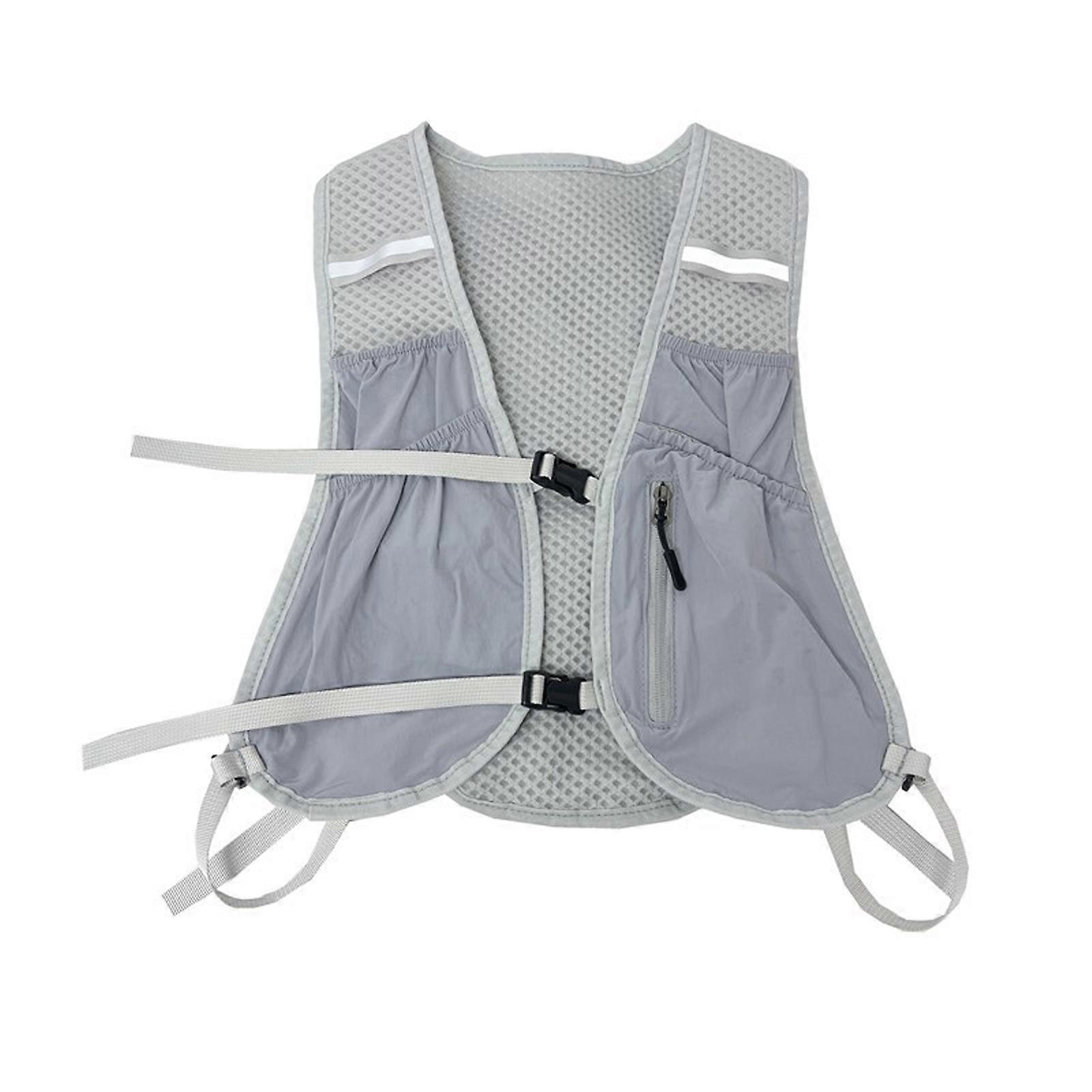 Reflective Running Vest Water Bottle Pack With Phone Holder Adjustable Light Weight Running Backpacks for Men Women Light gray