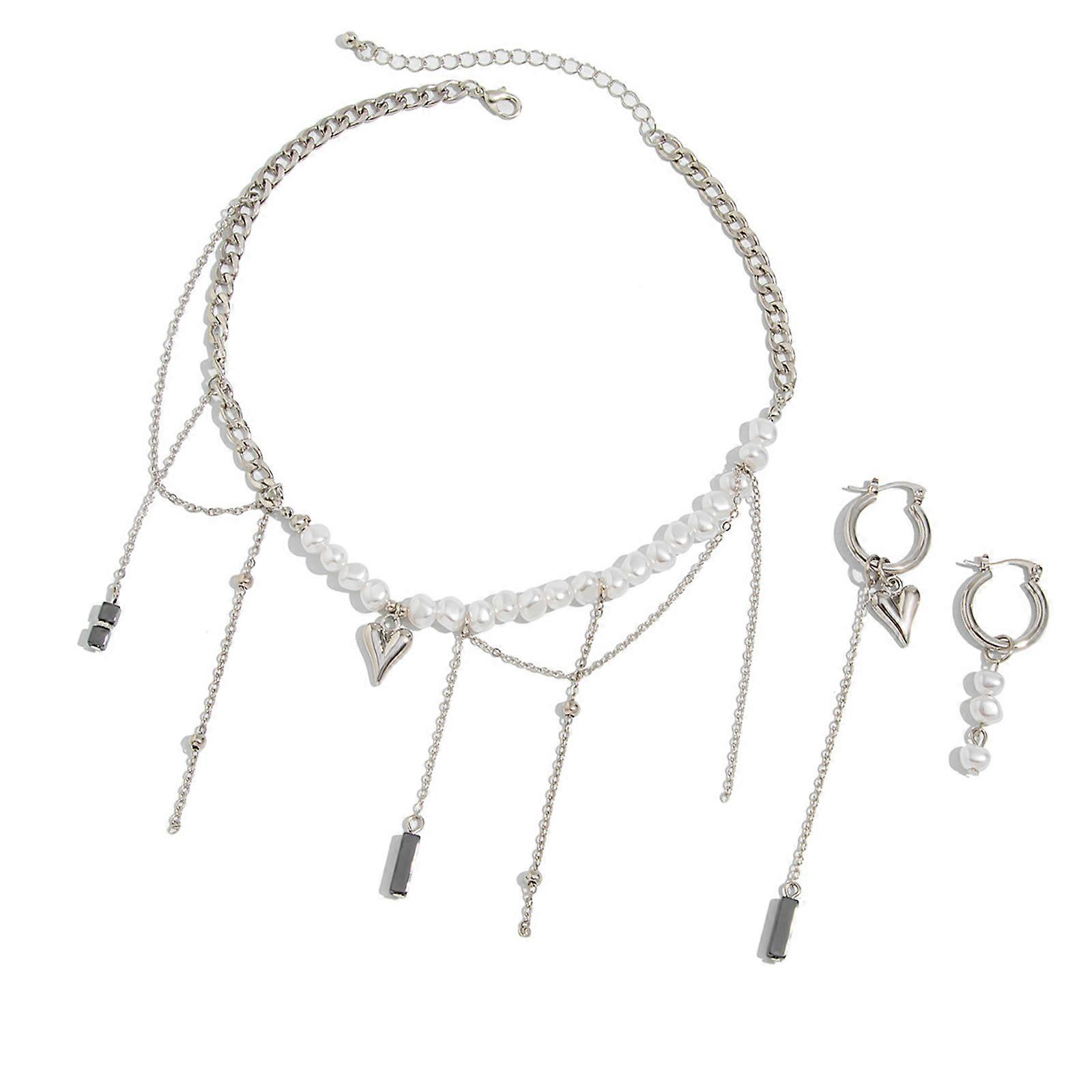 Features: This bohemian inspired necklace and earrings set combines a vintage silver curb chain, asymmetrical heart pendant, and faux pearls accents for a unique layer look, perfect as women's jewelry or a chic choker necklace. Handmade with lightweight alloy and realistic faux pearls, the jewelry set features an adjustable clasp, sweat resistant finish, and artisanal stone beads that maintain luster for daily wear. Designed for fashion forward women and teenage girls who appreciate edgy yet feminine accessories, it complements both casual outfits and evening attire with its versatile street style aesthetic. Layer the Cuban chain necklace with the pearls choker for music festivals, pair individually with off shoulder tops for brunch dates, or stack with other necklaces to elevate basic tees – ideal for multiple occasions. The jewelry set's mix of industrial curb links and organic pearls textures creates striking contrast, embodying modern bohemian charm while remaining lightweight (under 50g) for all day comfort as a premium fashion accessory. Specifications: Material: Imitation Pearls, Alloys, Turquoise Beads Type:01 White K Necklace Earrings 6188/02 White K Necklace Earrings 6182(Optional) 01 White K Necklace Earrings 6188 Size: Necklace Size:Approx.47cm/18.5inches Earrings Size:Approx.1.5x7cm/0.59x2.75inches 02 White K Necklace Earrings 6182 Size: Necklace Size:Approx.36+7cm/14.1+2.7inches Tassels Size:Approx.8cm/3.14inches Earrings Size:Approx.2cm/0.78inches Package Includes: 1Set Necklace and Earrings Set note: Please allow 1-2cm errors due to manual measurement. Due to the differences between different monitors, the picture may not reflect the actual color from the item.