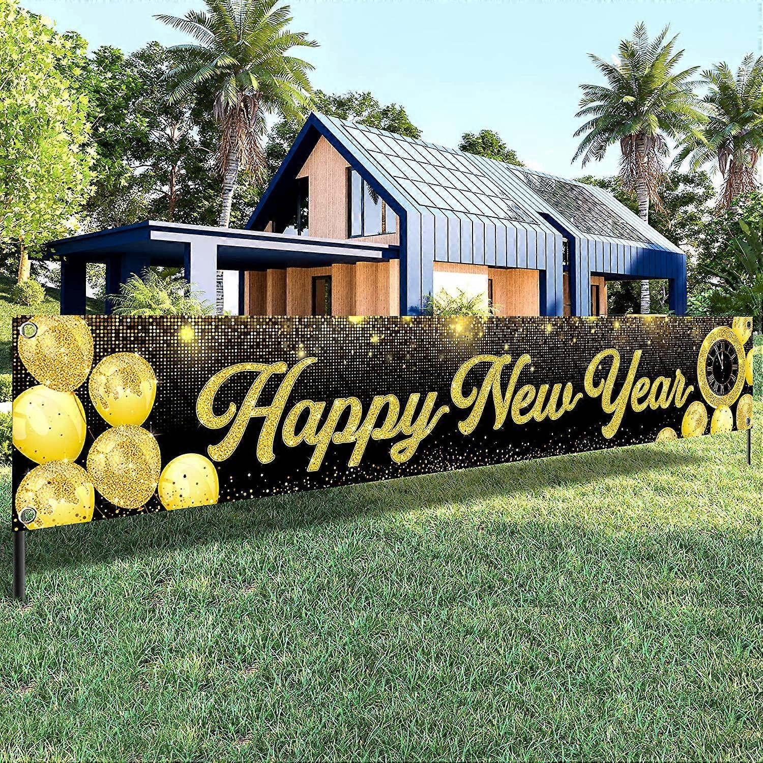 XtraLarge Happy New Year Banner 2025 - 120x20 Inch, Yard Sign for NYE Party | Decorations & Supplies