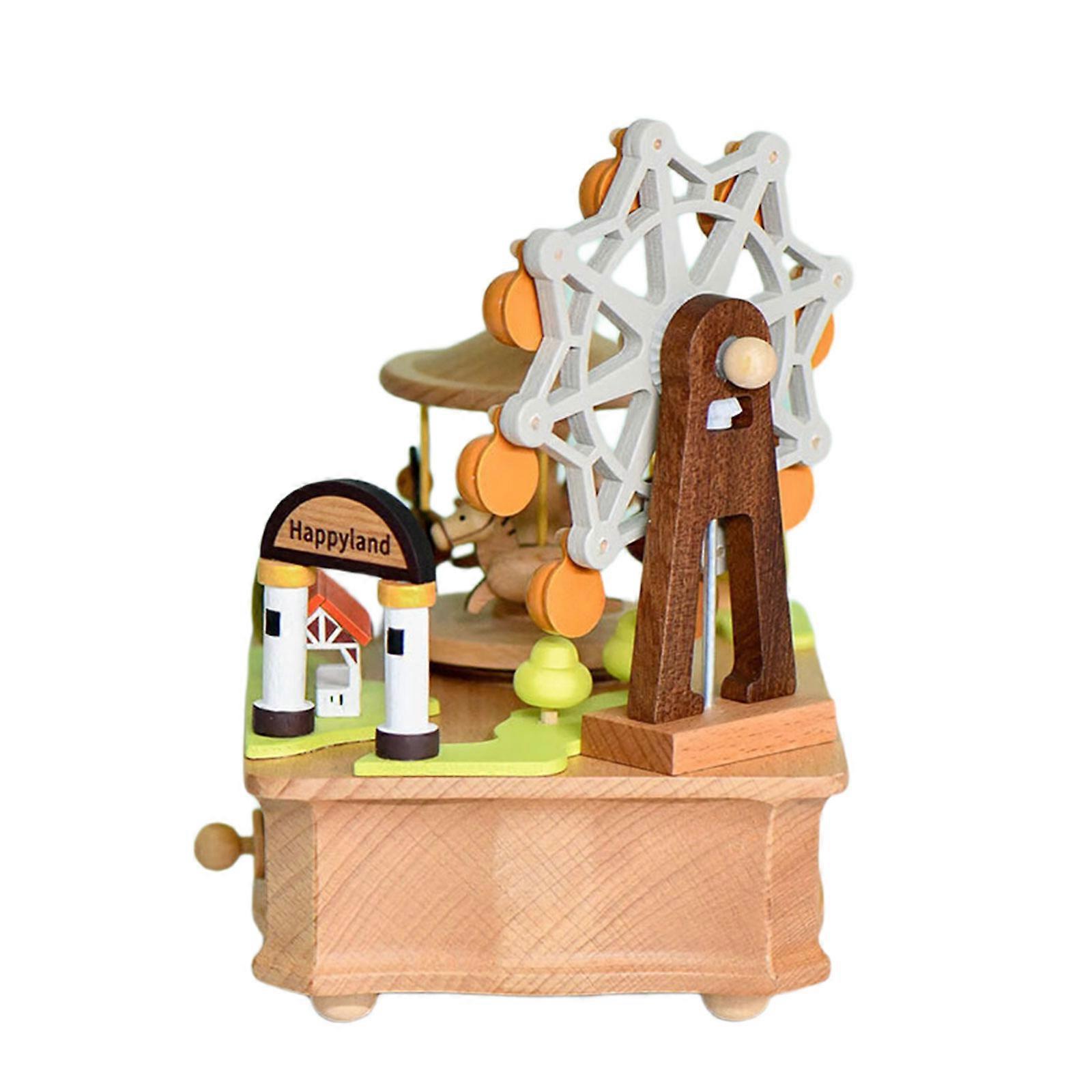 Rotating Carousels Ferris Wheel Wooden Music Box Mechanical Wind Up Decorative Ornament For Bedroom Office Display Gift Multicolor