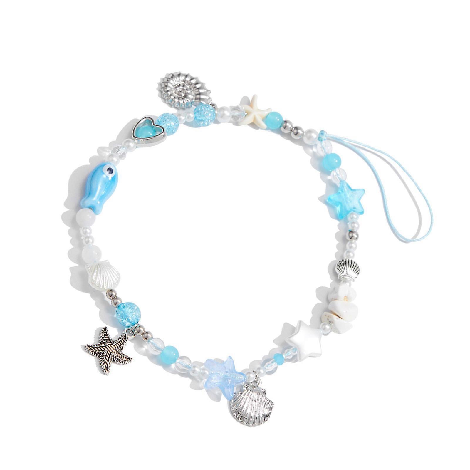 Marine Style Alloy Phone Lanyard with Conch Shell And Starfish Pendant Colorful Beaded Cellphone Lanyard Decoration Multicolor