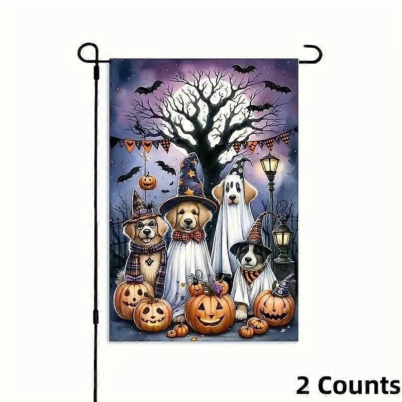 Halloween Garden Flag, Double-Sided Linen Welcome Banner with Pumpkin Ghost Dog Design, 30.48x45.72 Cm Outdoor Halloween Decoration