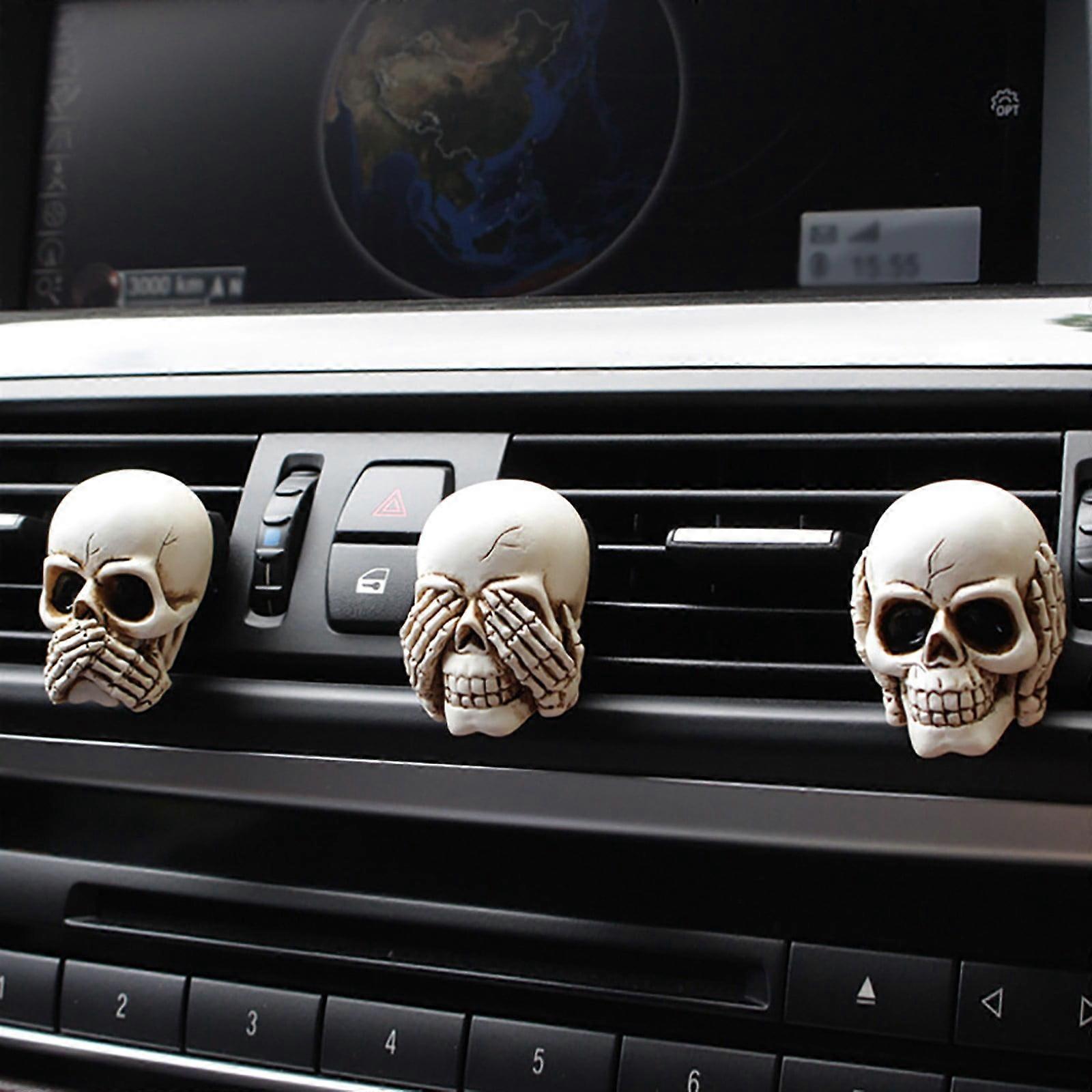 Yakbaofuo Don't Listen Don't Look Don't Say Head Aromatherapy Clip, Car Vent Clip Compatible with 1.5-2.2in Vents, Creative Skeleton Decoration for