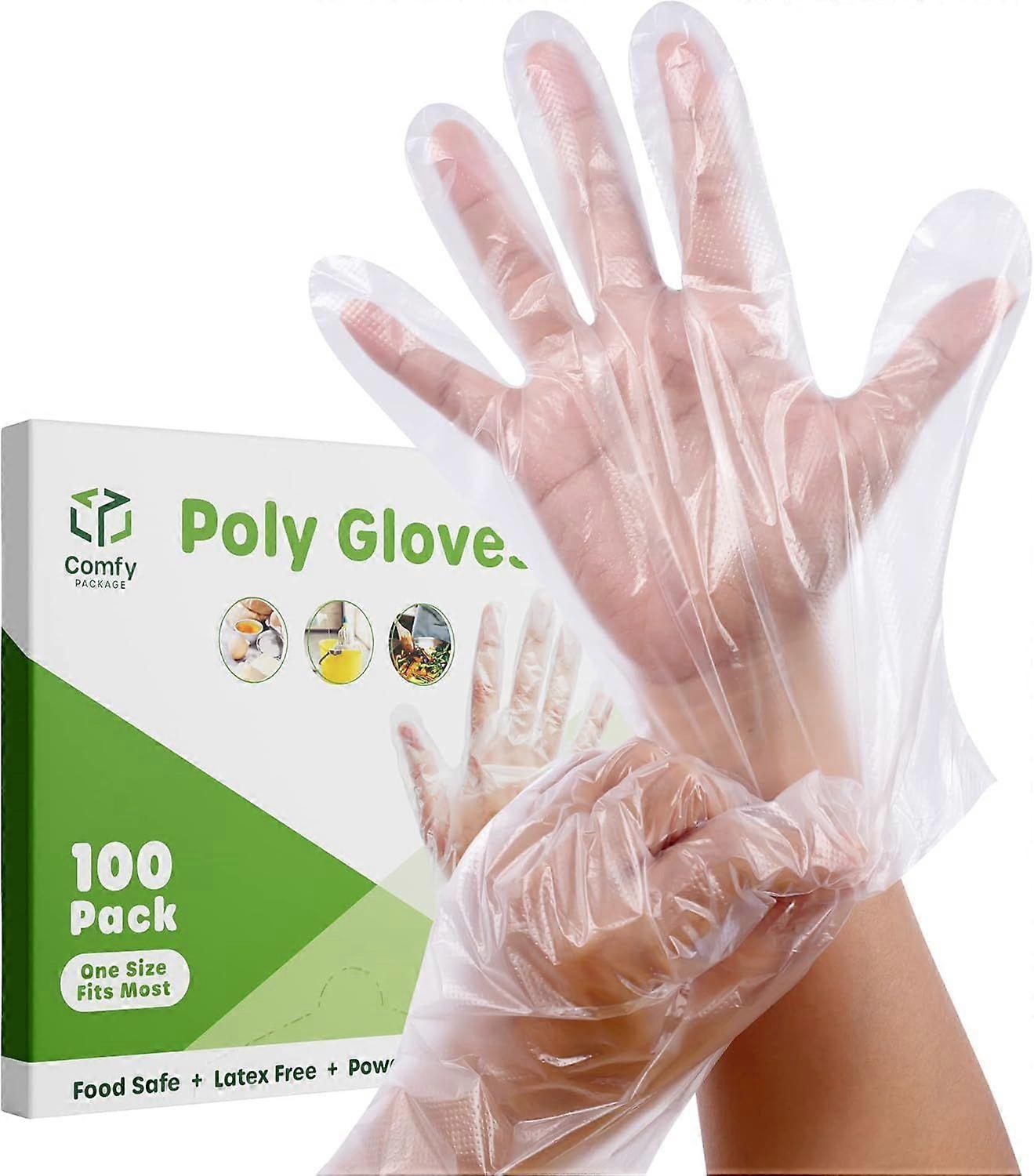 Extra Strength Plastic - made of durable poly plastic that covers and protects your hands completely, these plastic gloves disposable for cooking prevent any substances or solids from going onto your hand.One Size, Odor-Free Gloves - These food-safe gloves come in a 100-count package and are odor-free, available in one size that fits most.Easy on, easy off - enjoy the benefits of food service gloves that slide smoothly onto your hand, without tearing or uncomfortability. Easily slide them off and dispose after use.Disposable Poly Gloves - pack of 100 count disposable food prep gloves. Serves all your food handling and serving needs. Suitable for use while cleaning, washing and working with dirty items.Broad Range of Movement - the specially designed shape of these plastic food gloves allows you to comfortably wear the gloves and move your hands freely, with no restraints.