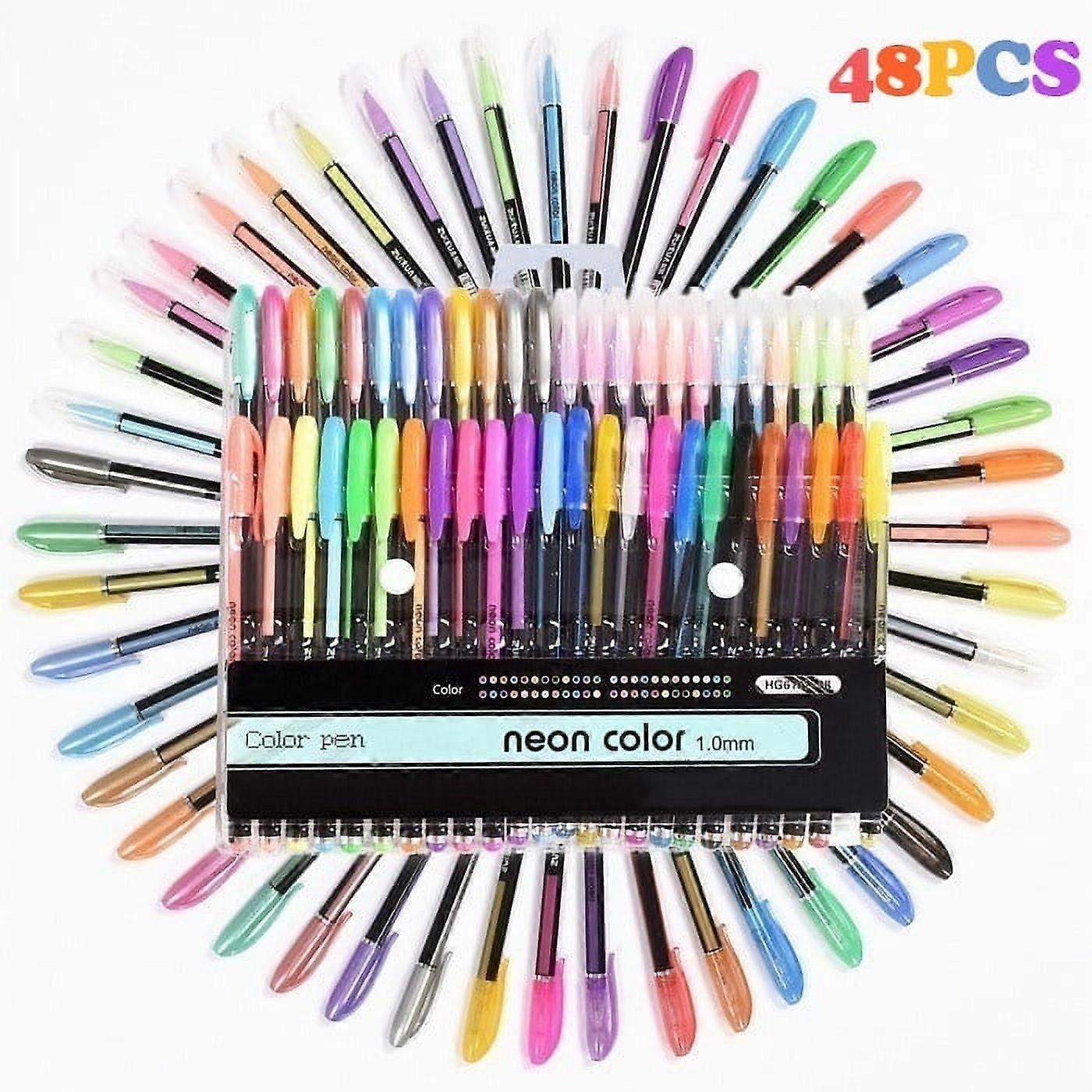 48Pcs Gel Pen Set Metallic Pastel Glitter Neon Gel Pens for Adult Colouring Book(Size: 1mm Color: Multicolor)