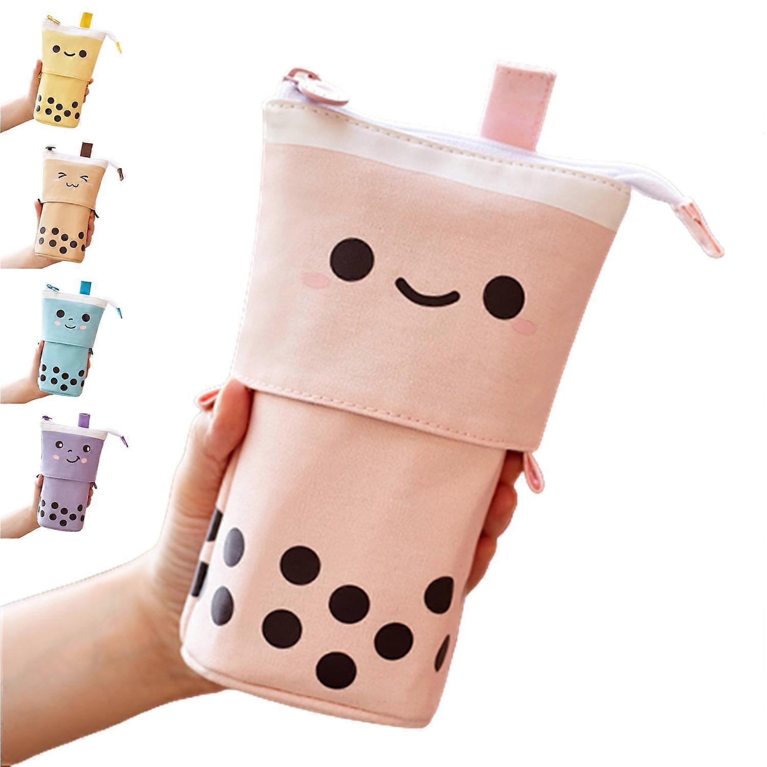Cute Retractable Pencil Case Milk Tea Pen Pencil Stationery Case Multi-function Pencil Holder Organizer(Pink)