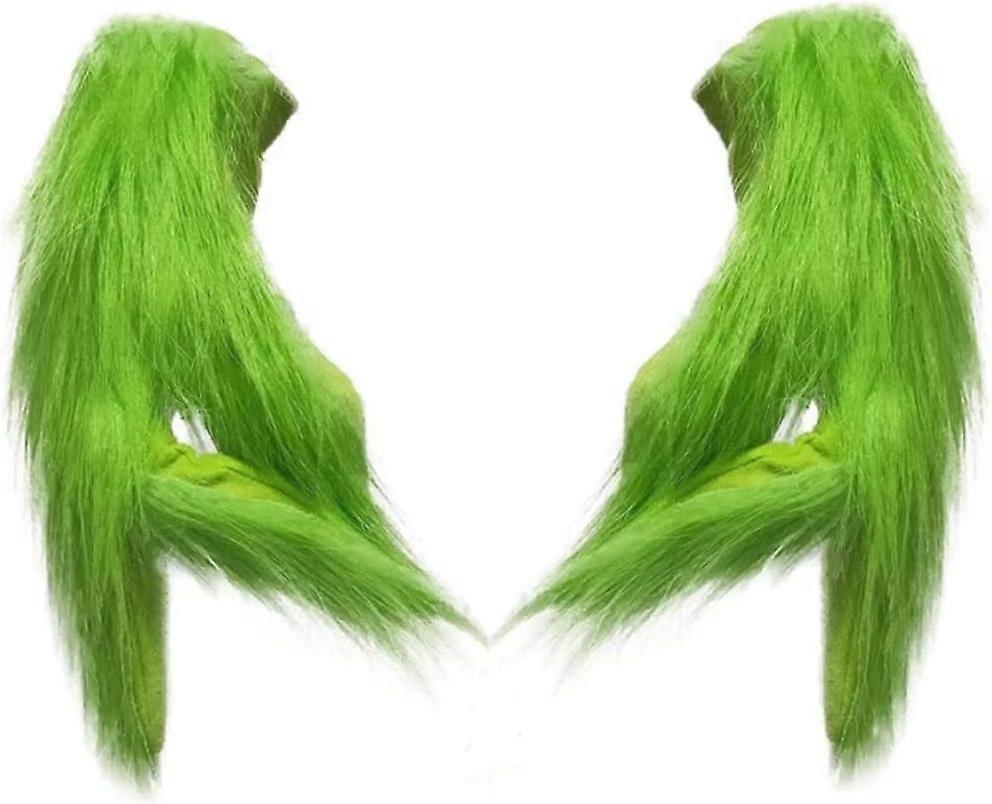 Hefnoya Green Furry Plush Gloves Adults and Kids, Christmas Santa Cosplay Costume Mask Props Green Hands Gloves