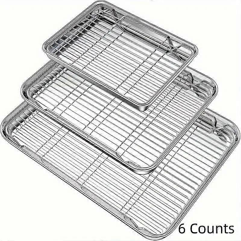 Stainless Steel Baking Sheet & Rack Set, 6 Counts/set Including 3 Versatile Oven Trays & 3 Cooling Racks, Easy To Clean, Food-safe Bakeware