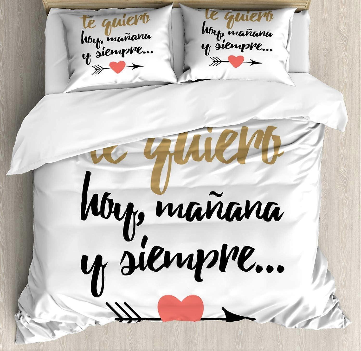 Spanish Duvet Cover Set, Te Quiero Hoy Manana Y Siempre Love Words with Heart on Arrow, 3PC Bedding Set with 2 Pillowcases