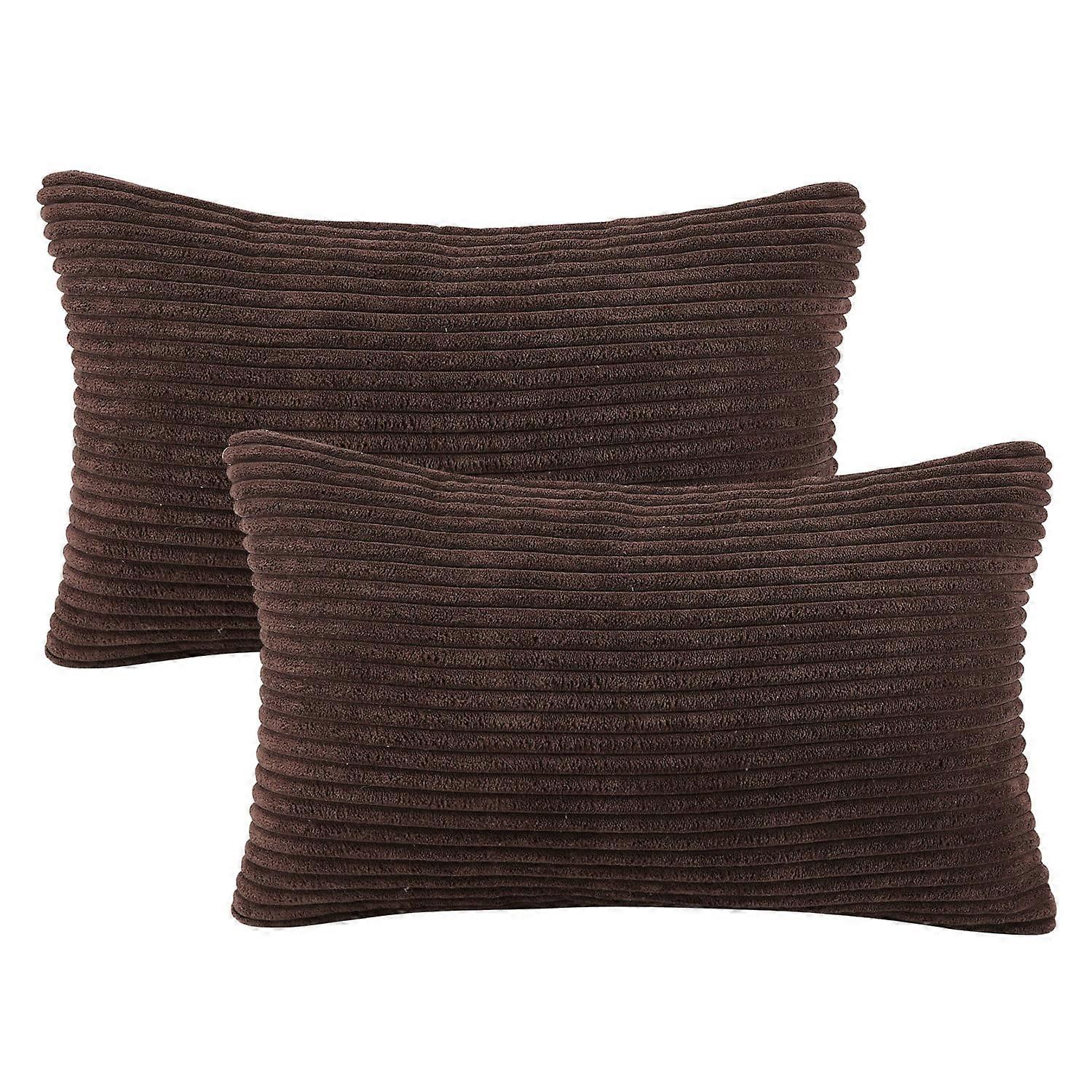 Phantoscope Christmas holiday Corduroy Striped Velvet Series Decorative Throw Pillow Covers, 12" x 20", Dark Coffee, 2 Pack