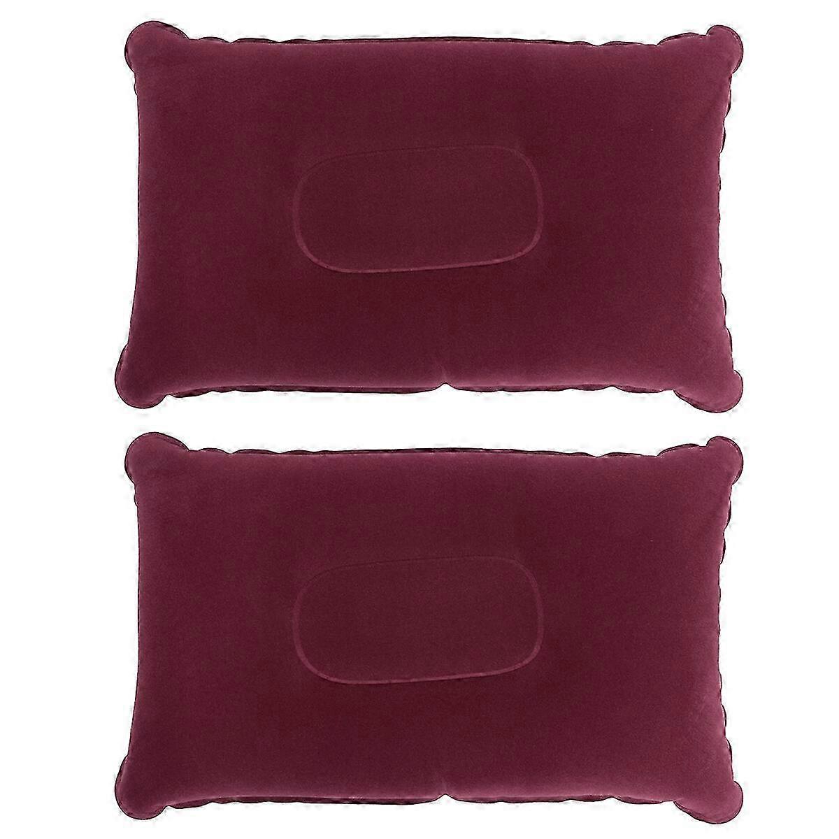 2pcs Super-thick Flocking Fabric Inflatable Pillow Portable Travel Pillow for Outdoor Activities (Purplish Red)Red SZRH