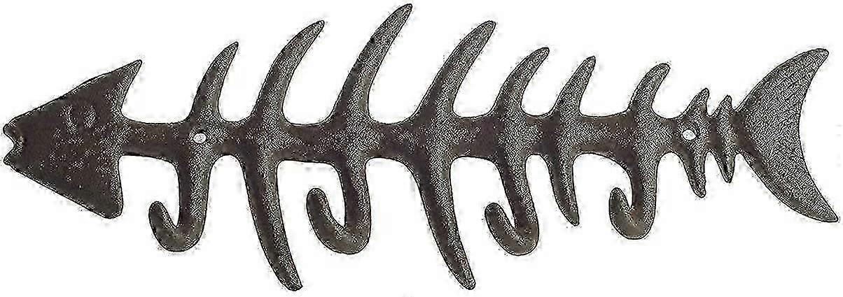 Stylish Cast Iron Coat Rack Fishbone Decorative Wall Mounted Towel Rack with 4 'Fish' Hooks - Includes Screws and Anchors - Brown SZRH
