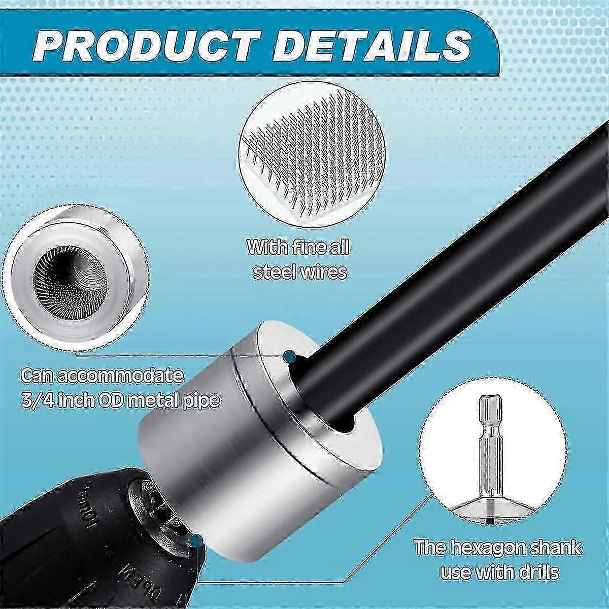 metal copper pipe cleaner set 1/2 and 3/4 inch with 1/4 hex shank 6 replace brush electric tool hwy197