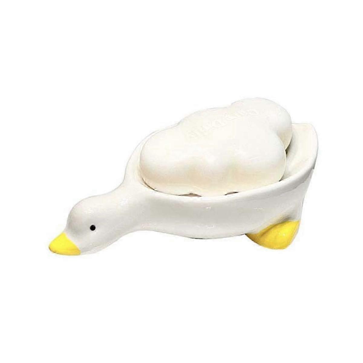 Ceramic Soap Dish with Drain, White Cute Animal Soap Dish for Shower Bathroom, Self Draining CeramiWhite SZRH