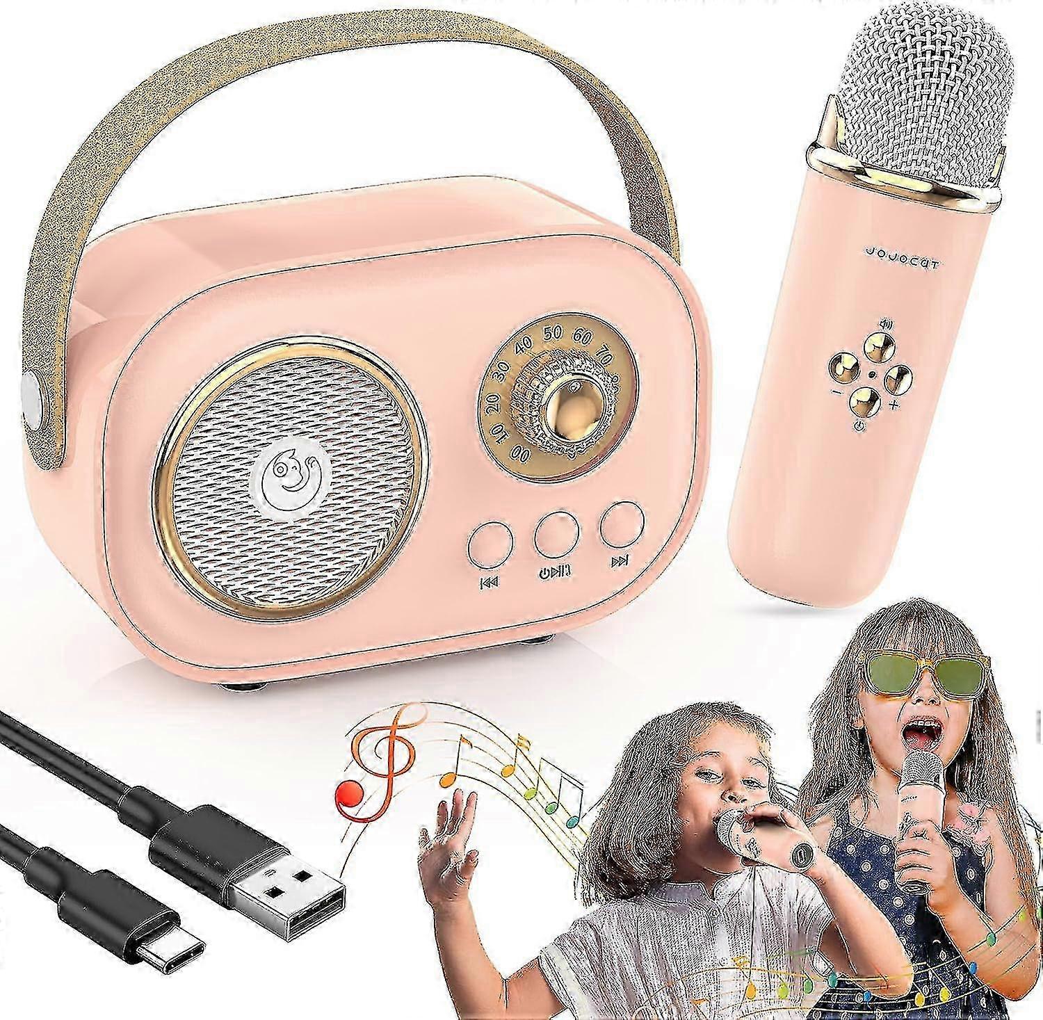 Mini Karaoke Machine With 2 Wireless Mics, Portable Bluetooth Speaker Toys, Small Karaoke Machine With Stereo Sound Enhanced Bass1Pcs MicrophonePink S