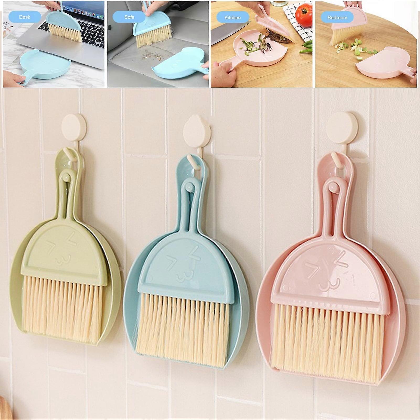 SUSUchens 1 Set Mini Broom Dustpan Set Durable Compact Desktop Cleaning Brush Hanging Hole Design Brush Home Accessory Green