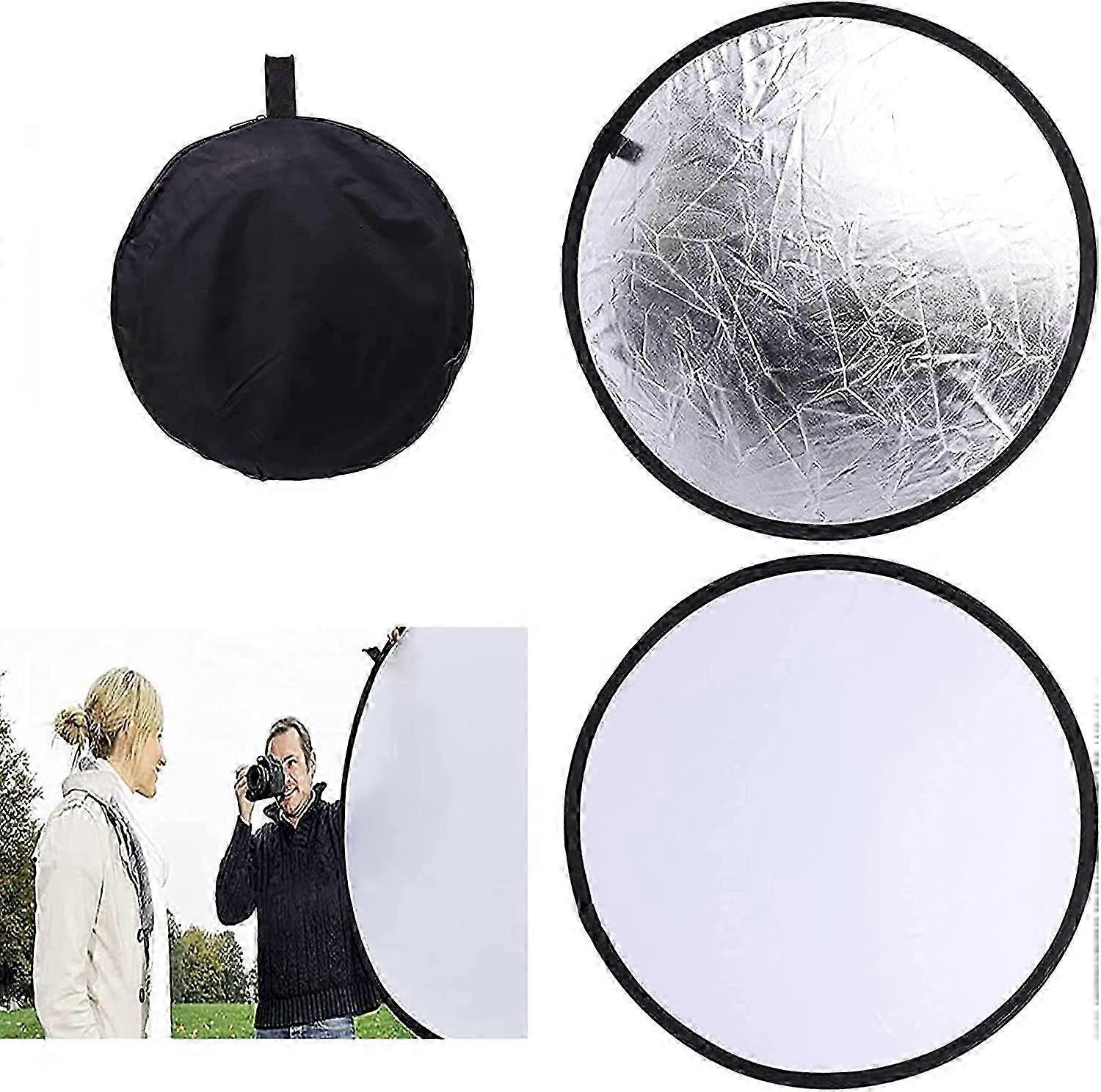 Photographic Light Reflector Two-In-One Foldable Selfie Background Diffuser Plate 12-Inch Camera Photo Reflector (Silver And White SZRH