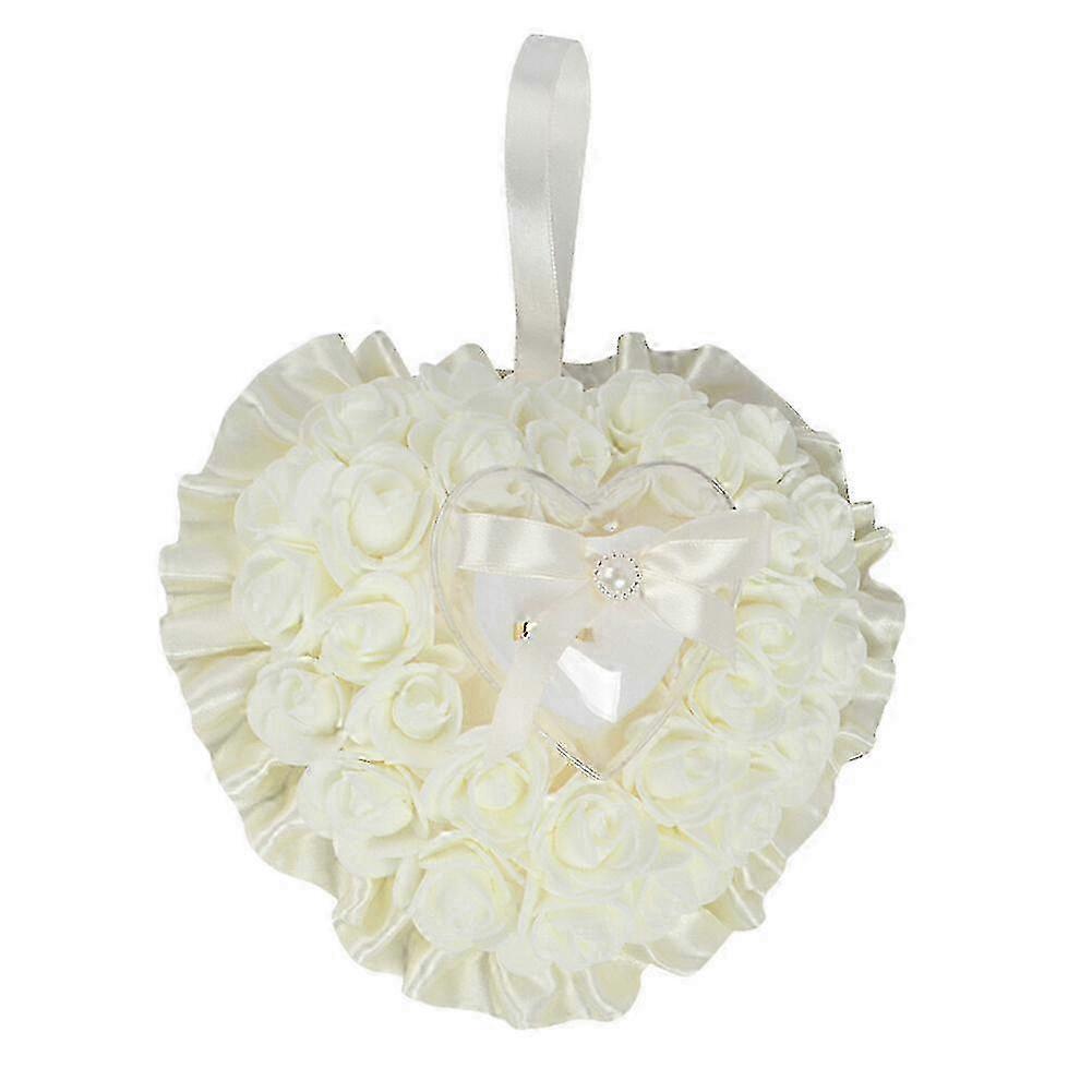 Wedding Ring Pillow, Foam Roses Heart Shaped Wedding Ring Pillow Hanging Box with Ribbon, Bridal Ring Pillow Ring Cushion for WeddType M SZRH
