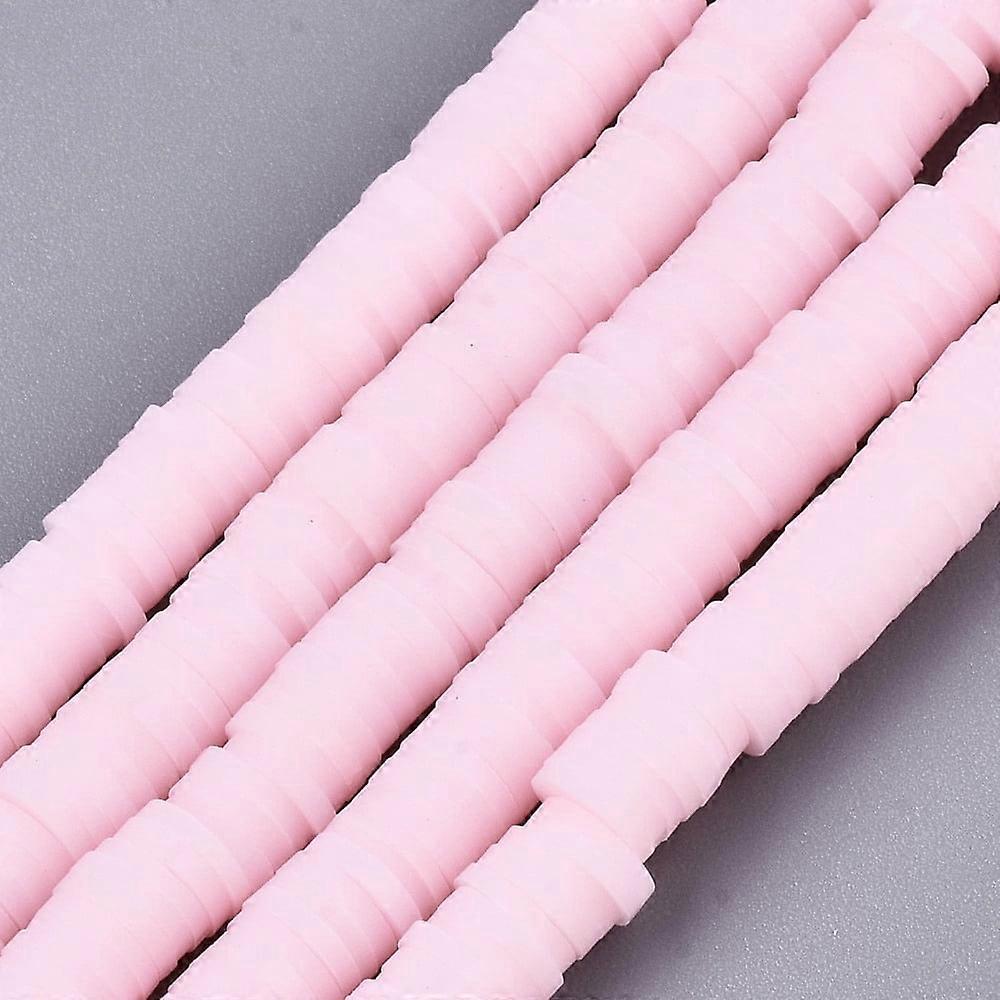 10Strand Handmade Polymer Clay Heishi Beads for DIY Jewelry, Pink Disc/Flat Round 6x0.5~1mm 290~320pcs/strand 15.75"~16.14" (40~41cm) Hole: 1.8mm
